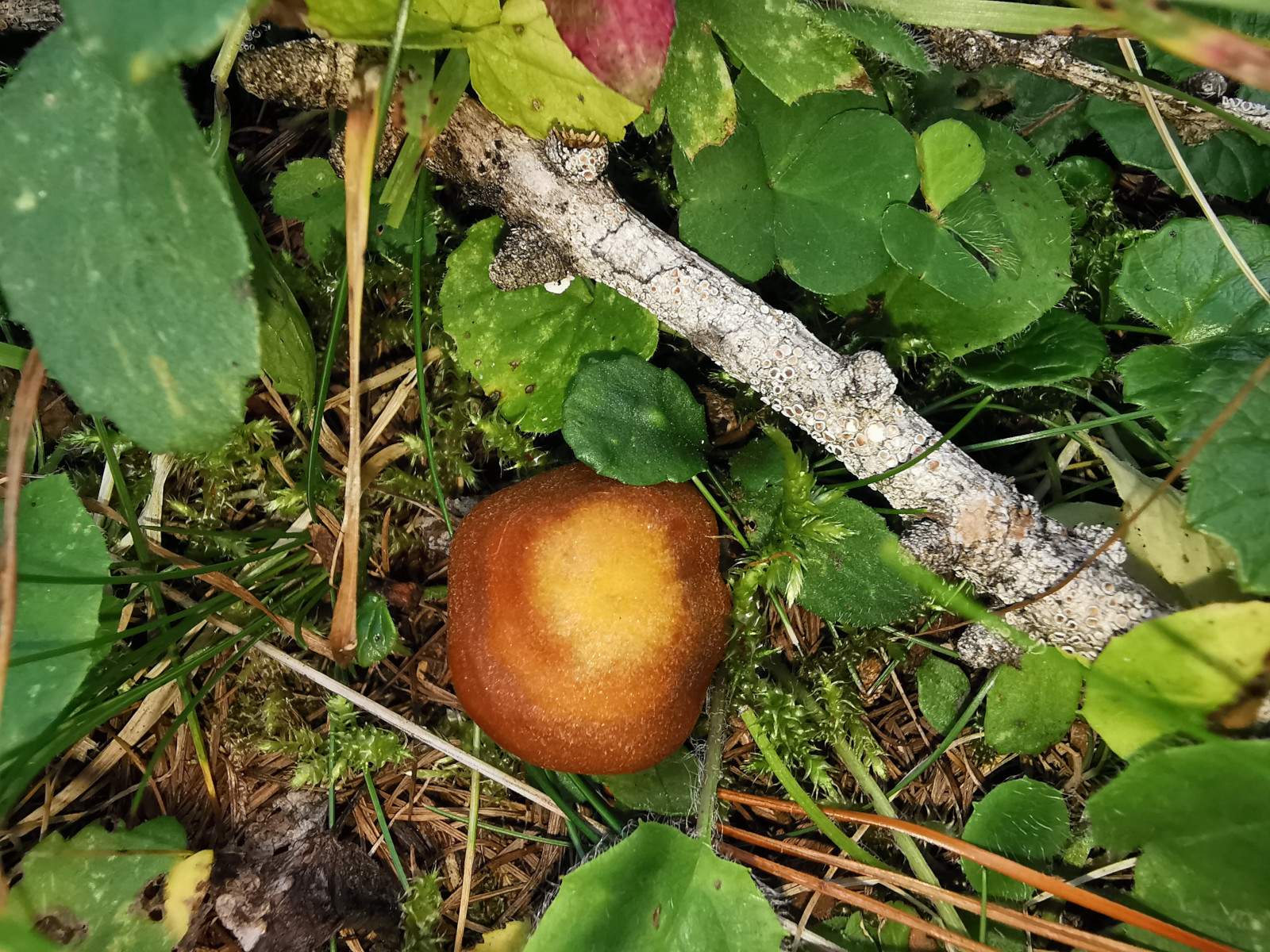 Hut: ca. 4cm breit, orangebraun, hygrophan, glockig, glatt
