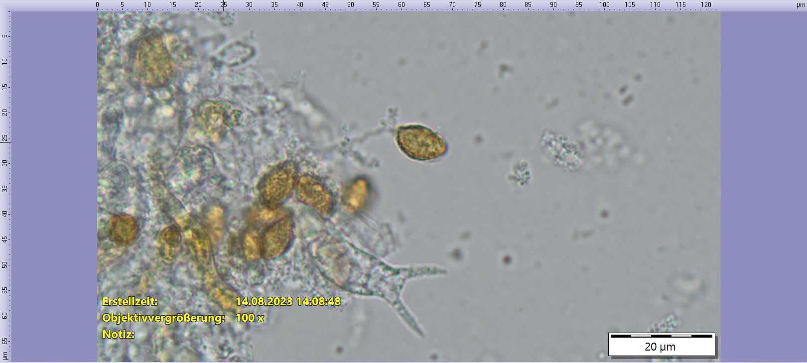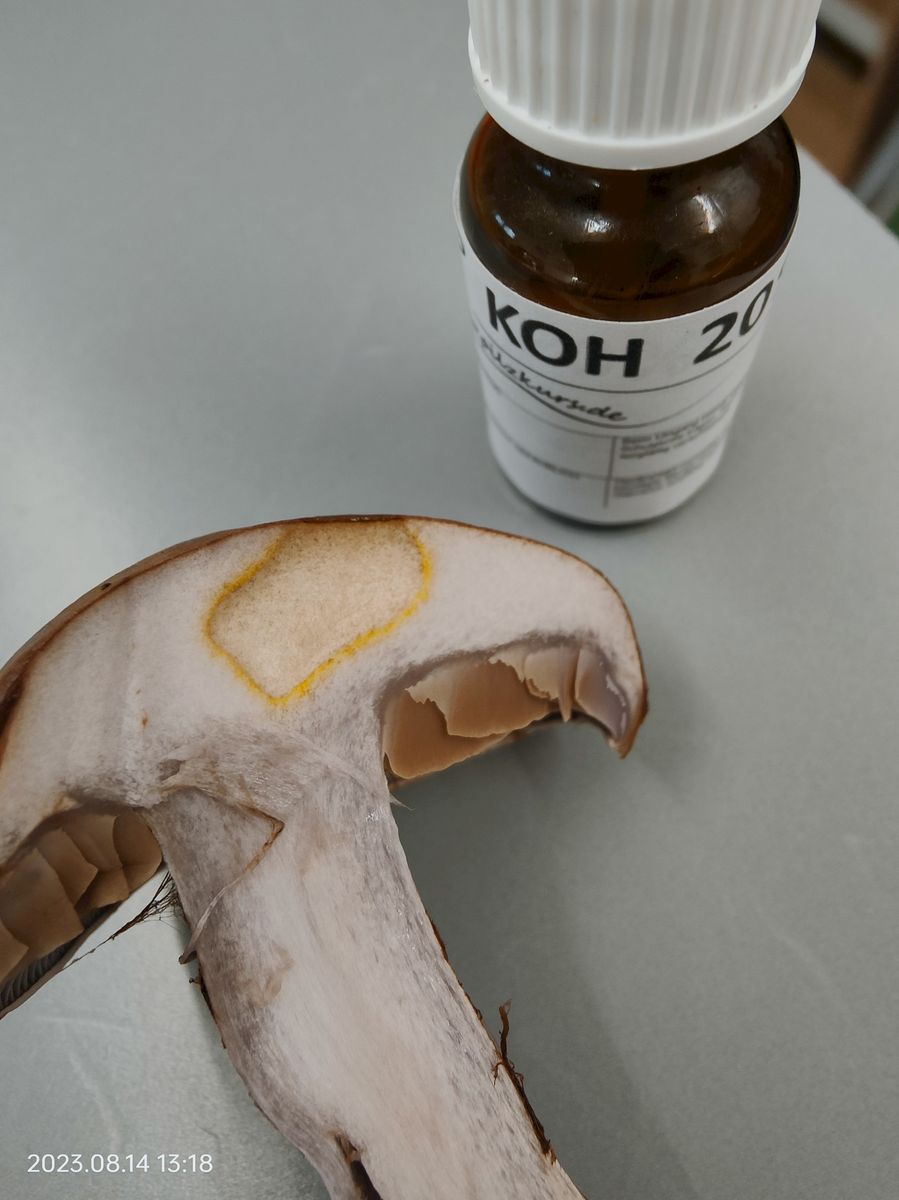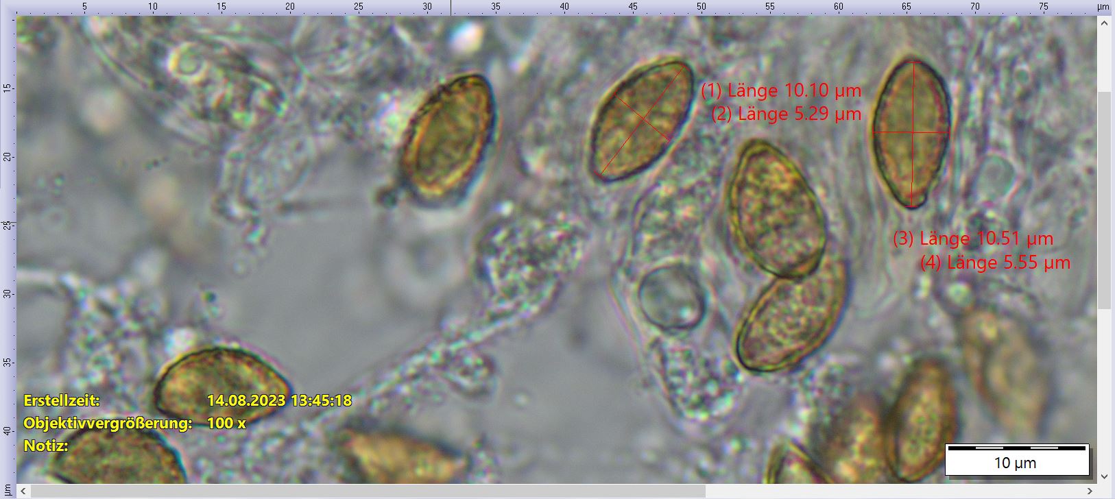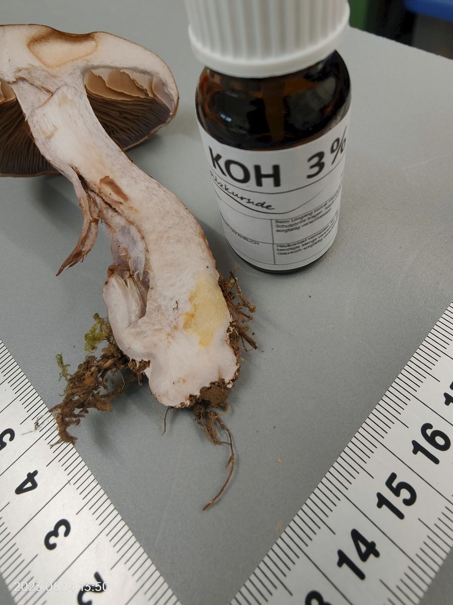 Die KOH Reaktion mit deutlich gelber Verfärbung und die Sporenmassen passen auch dazu.