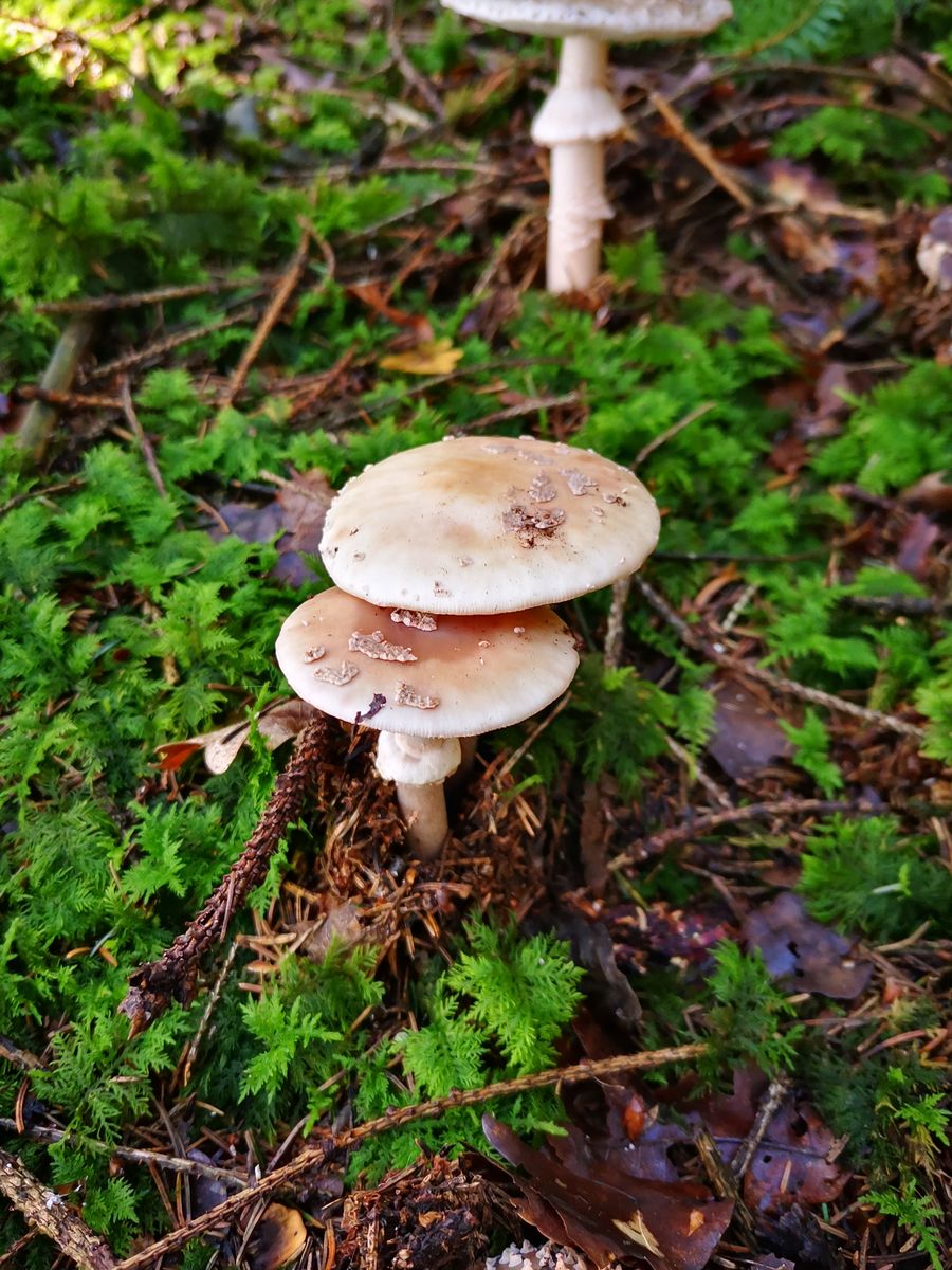 • Ich stehe vor ähnlicher Fragestellung. Diese Pilze sprießen im Wald von unglaublichen Mengen. Und ich tippe auf den Perlpilz, vorallem aufgrund der geriffelten Ringoberseite und das Fehlen der Bergsteigersöckchen.