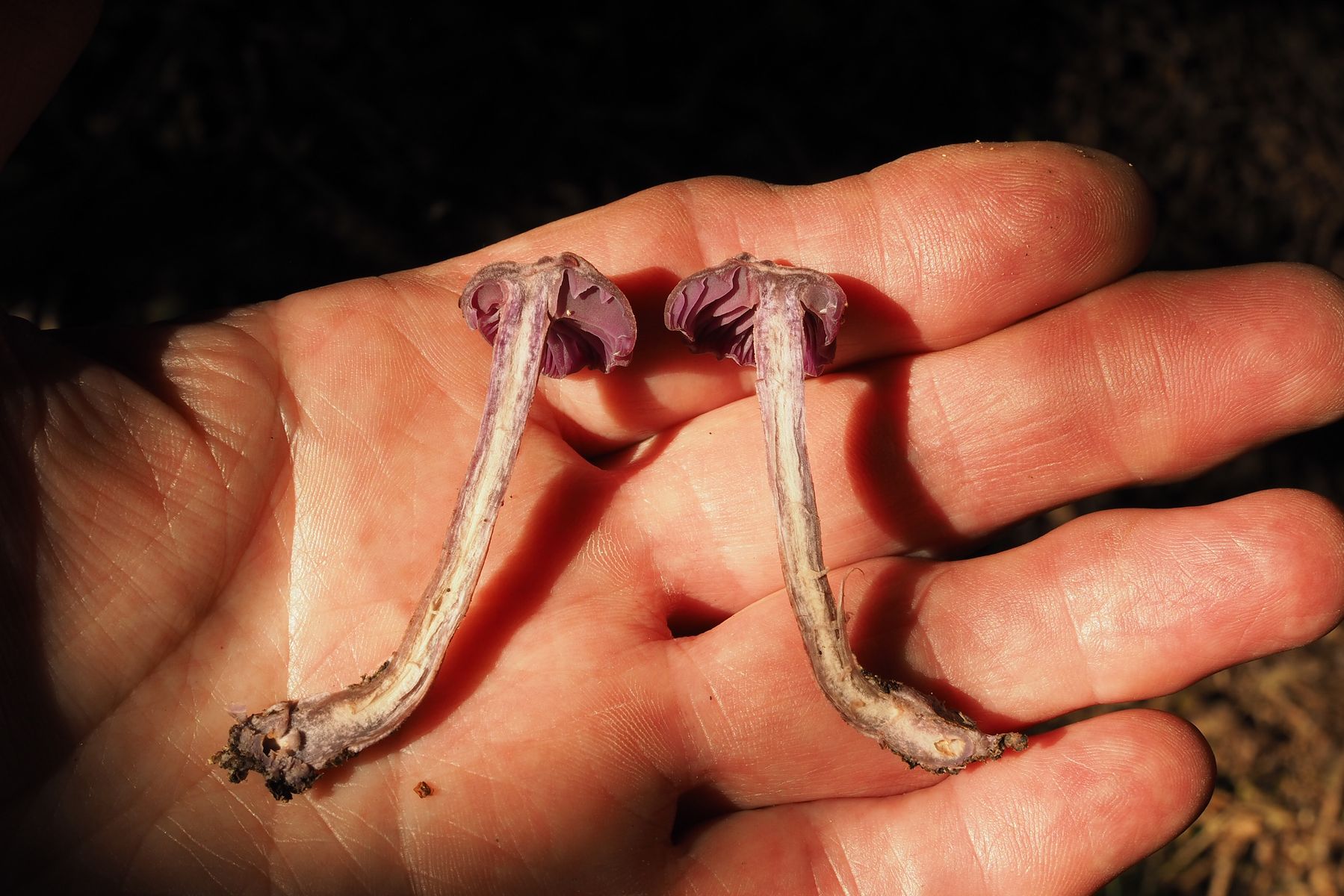 am 11. August habe ich unter Eichen und Birken einen kleinen lilafarbigen Pilz gefunden, den ich noch nicht kenne.