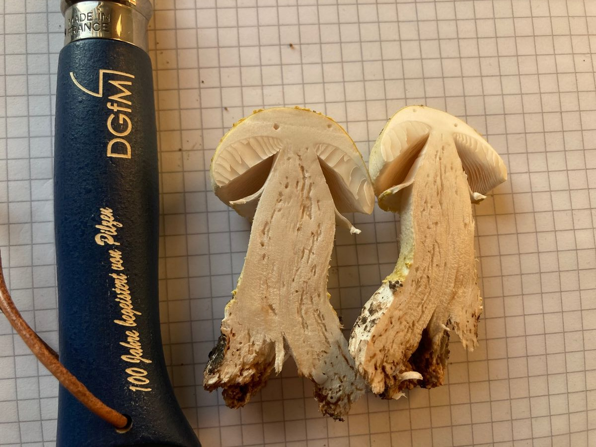 um das Amanitenbaby noch mal aufzugreifen, das hat sich über Nacht tatsächlich entwickelt. Ich würde beim Rauen Wulstling Amanita franchetii bleiben oder wie ist da eure Meinung?