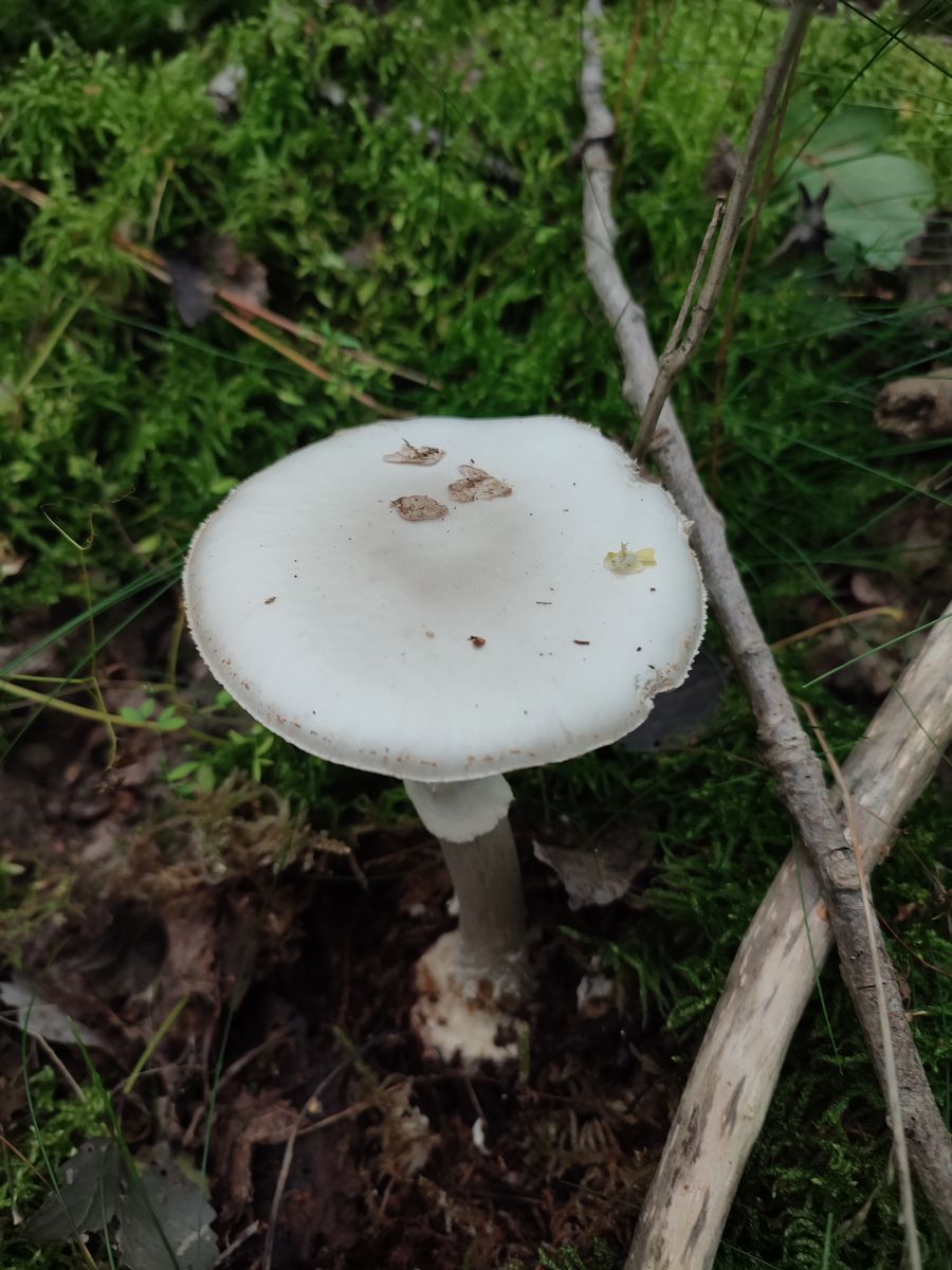 3.Was könnte das hier sein? Wir fanden diverse deutlich erkennbare grüne Knollenblätterpilze in der Nähe. Der Geruch hier ging in eine ähnliche Richtung wie beim Grünen, nur in deutlich abgeschwächter Form.