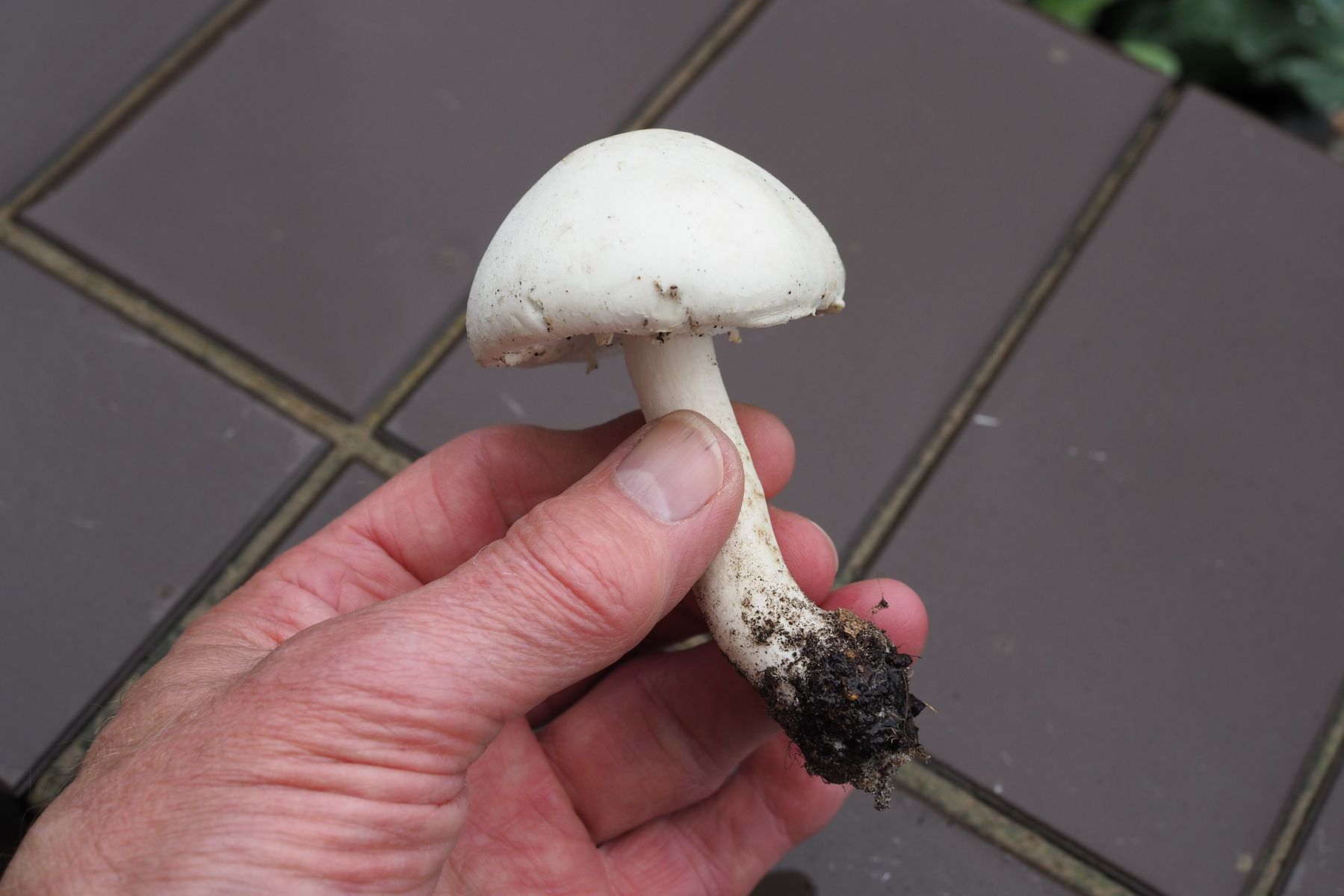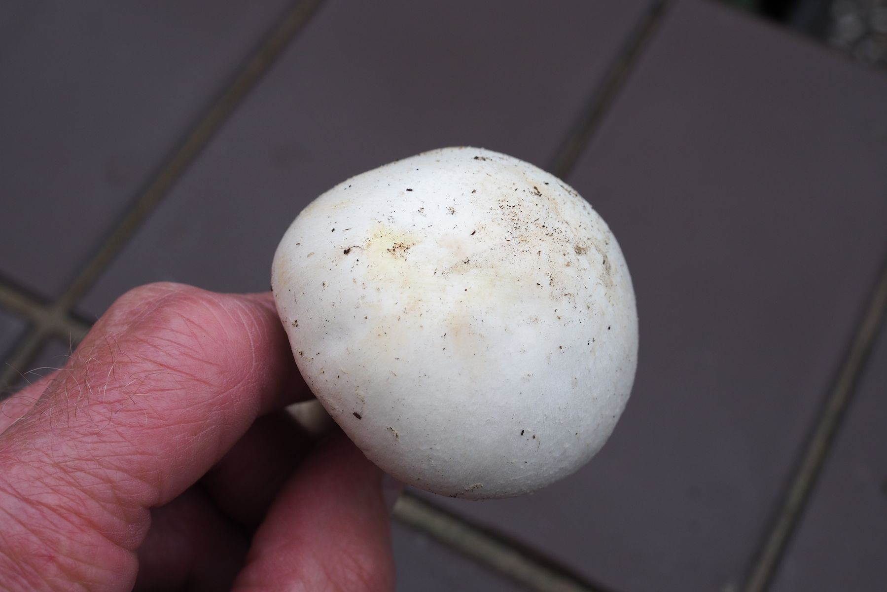 am 22. Juli habe ich auf dem Grasstreifen neben einem Wirtschaftsweg einen einzeln stehenden weißen Lamellenpilz gefunden. Als Begleitbäume kommen Eiche und Birke in Frage.