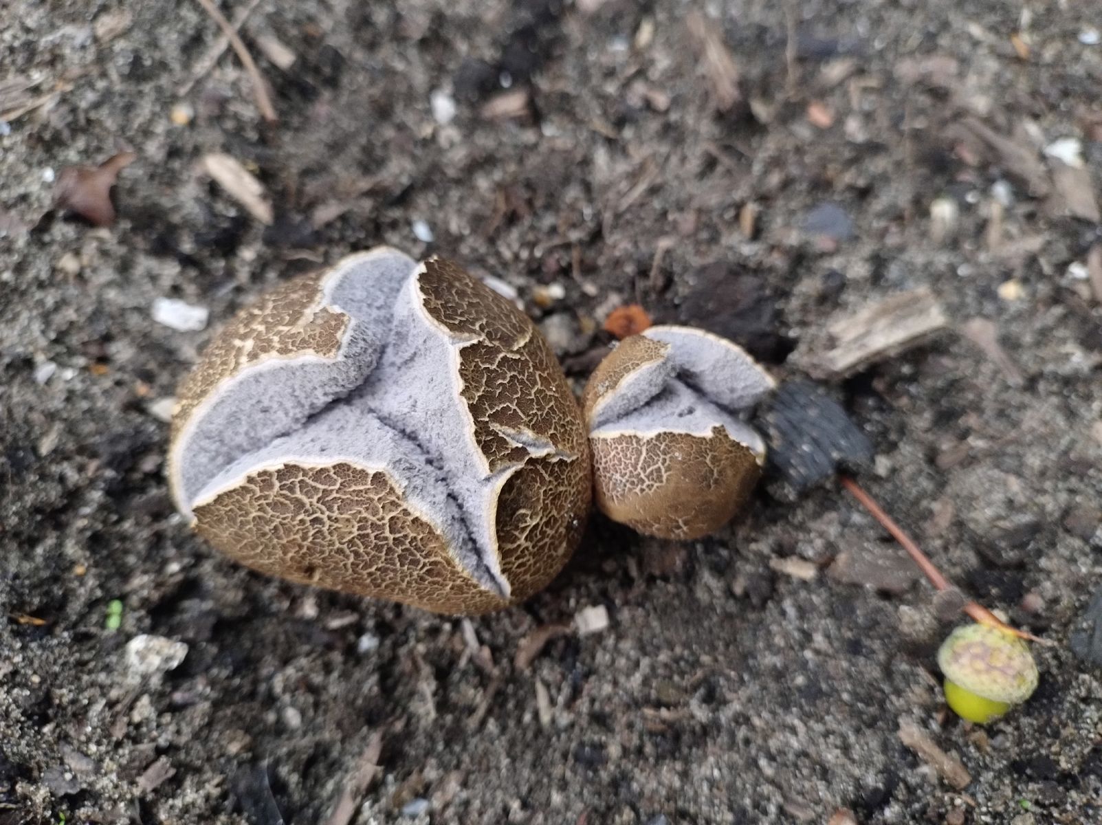 das ist einer der Kartoffelboviste, im Inneren noch recht hell, das wird dann immer dunkler, bis zu schwärzlich.