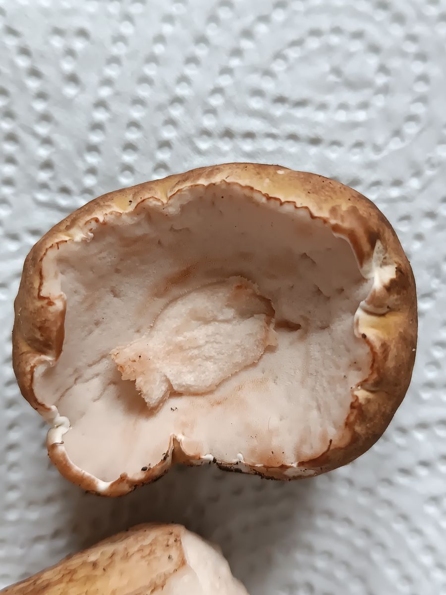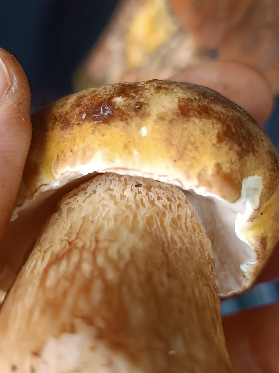 Ich würde eher auf Steinpilz tippen.Ich bin mir bei diesem Exemplar unsicher weißes Netz könnte man schon sehen also eher Steinpilz (aber gut möglich dass es noch ein sehr junger Gallenröhrling ist). Röhren wirken leicht rosa und besonders eindeutig war für mich das weiße Netz nicht.Geschmackstest wäre natürlich auch eine Option. Vielen Dank für eure Hilfe.