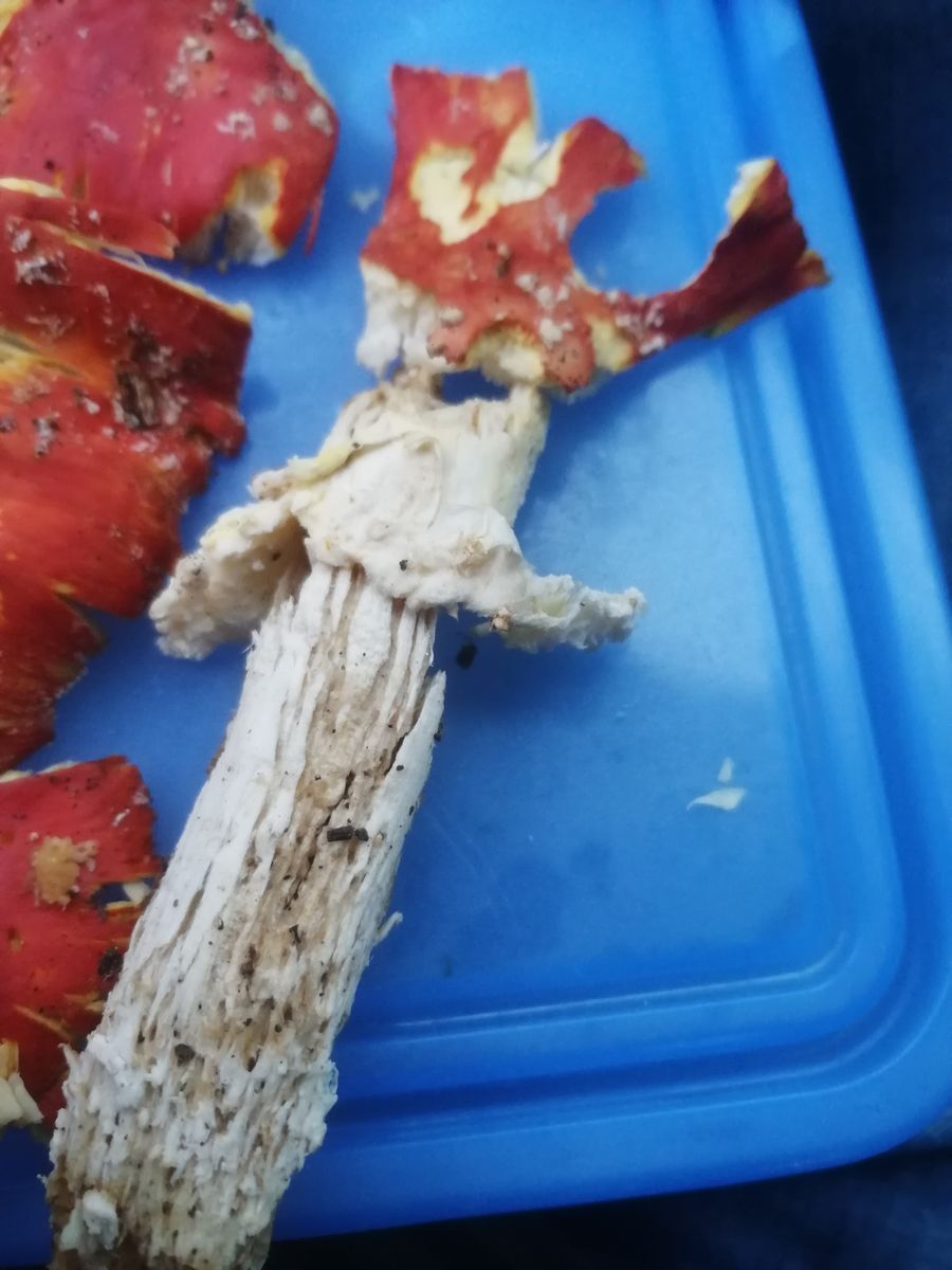 Ich bin neu im Forum und bin heute auf der Suche nach Fliegenpilz auf folgendes Exemplar gestoßen. Mittlerweile ist mit bewusst das es sich wahrscheinlich nicht um einen Fliegenpilz handelt, da keiner der Pilze einen Ring hatte. Da es die letzten Tage viel geregnet hat bin ich davon ausgegangen, dass die Punkte und der Rind eventuell deswegen fehelen. Wobei ich bezüglich des Rings jetzt etwas schlauer bin.
