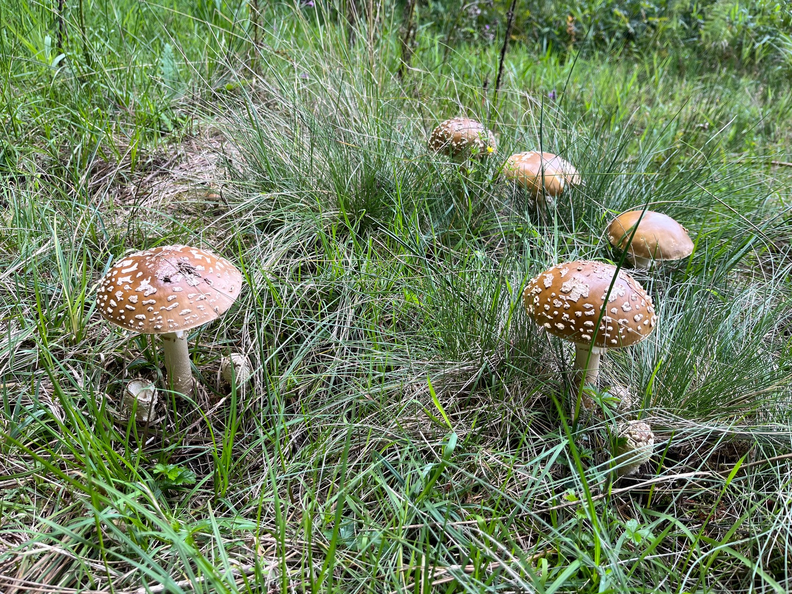 Normalerweise ist der Königsfliegenpilz längst Geschichte, wenn die Fliegenpilze auftauchen. Aber in den letzten 2 Wochen spielt die Pilzwelt verrückt, alle wachsen gleichzeitig. Von mir aus darf das gern so bleiben, auch, wenn mir wohl bald Schwimmhäute wachsen werden.🥴