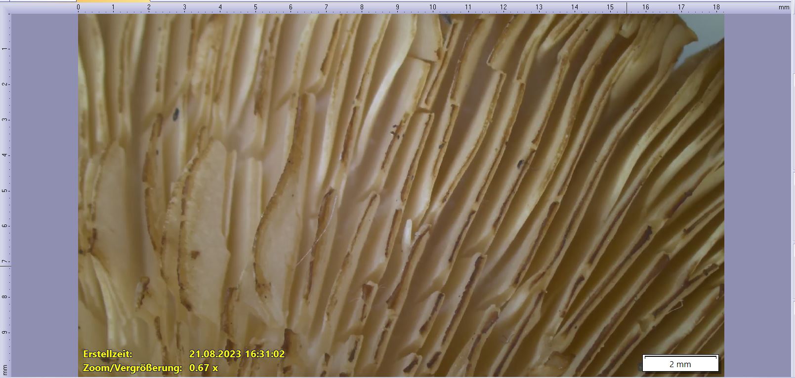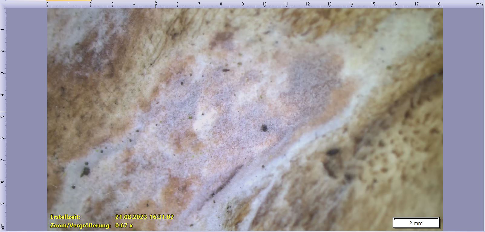 Hallo Werner, ich habe noch ein Exemplar mitgenommen und werde es noch mikroskopieren. Ein Schimmelbelag kann ich ausschliessen. BG Andy