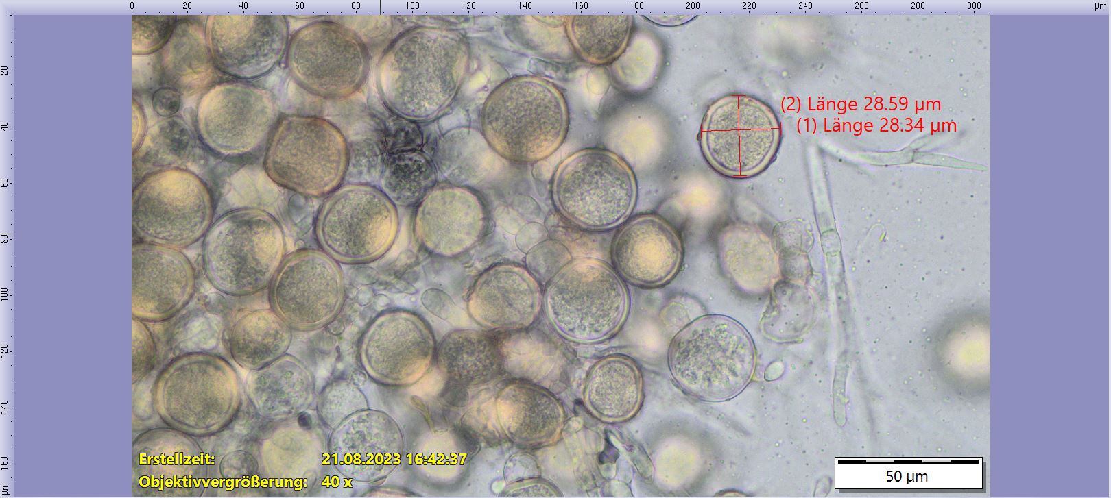 Noch die Basidien gemessen -> die Masse sind in etwa gleich