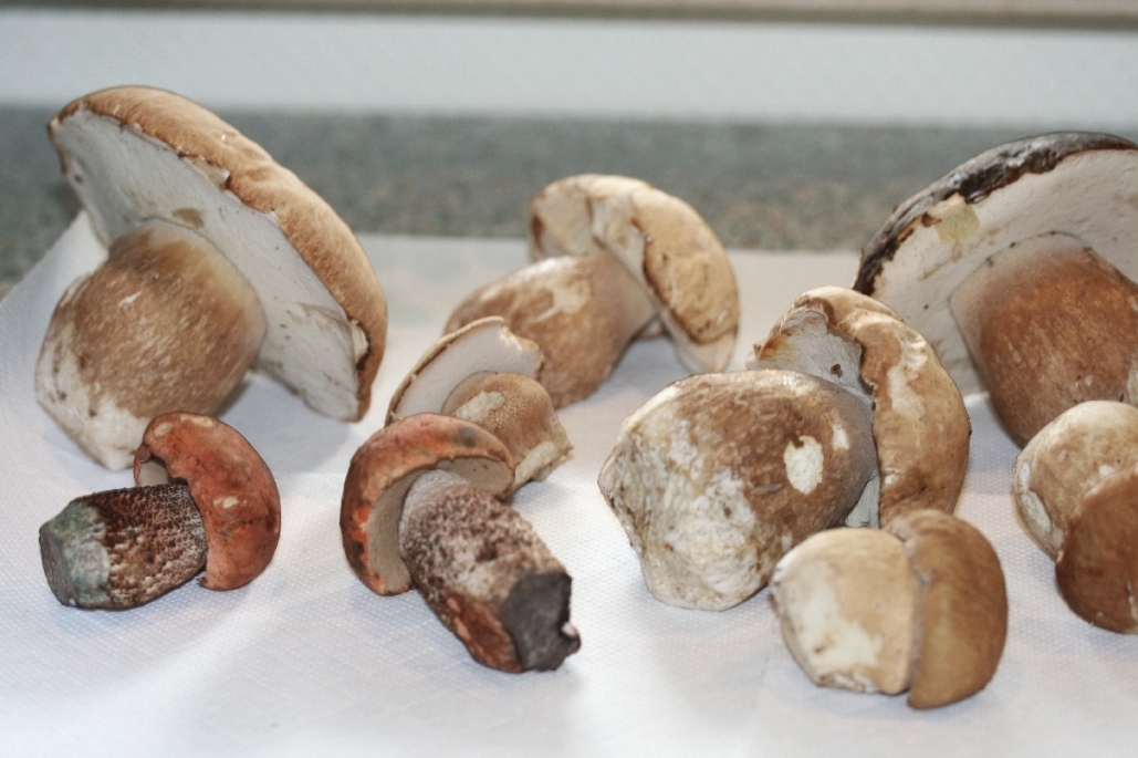 Und auf Bild 4 sind links unten die 2 Rotkappen, rechts oben der vermeintliche Schwarzhütige Steinpilz und sonst die Sommer-Steinpilze zu sehen.