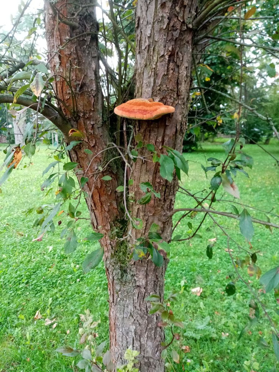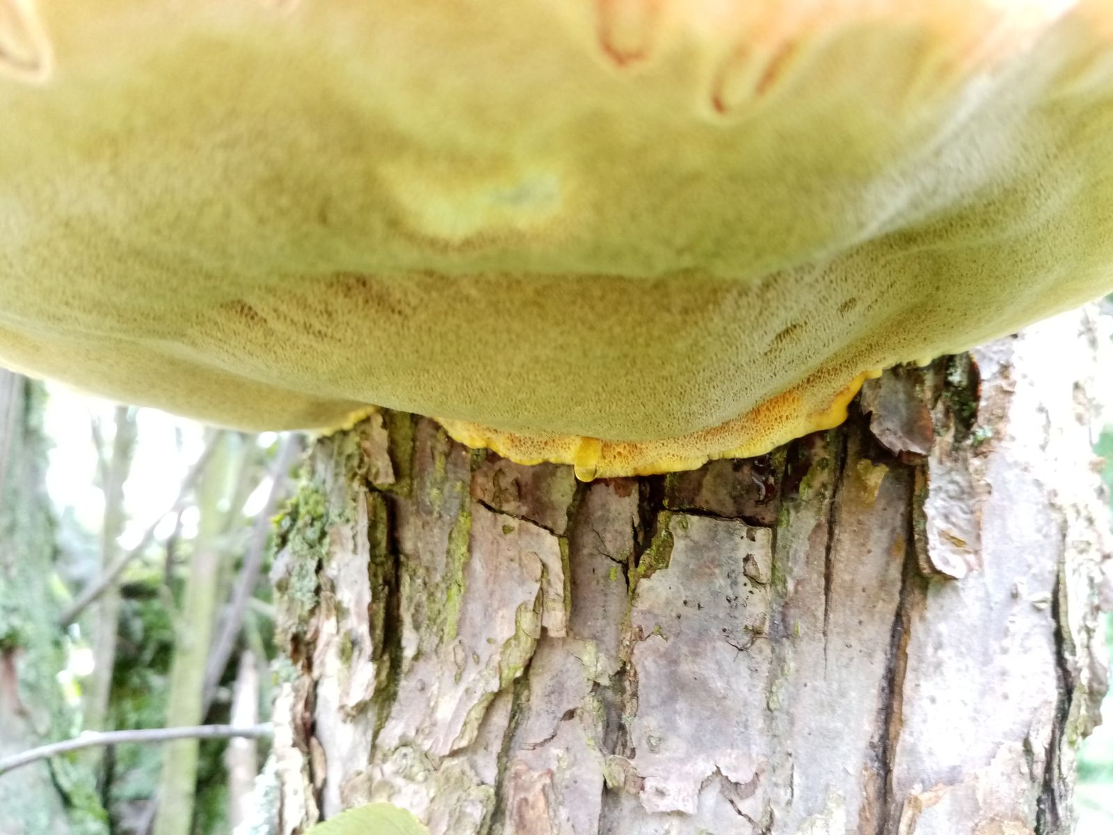 Der Pilz kommt mir sofort bekannt vor, hatte ich ihn doch vor zwei Jahren etwa schon mal an einem Apfelbaum in der Nähe beobachtet. ![]()