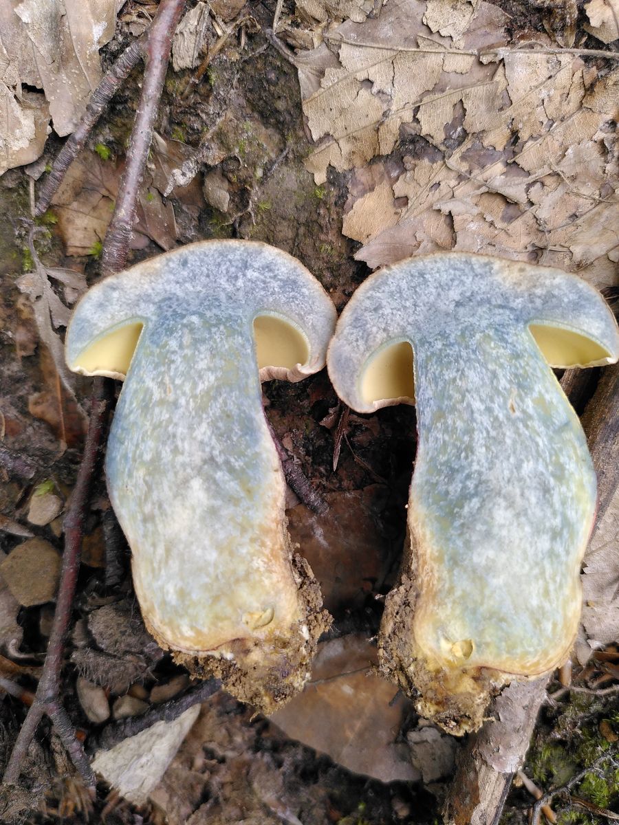 Fleisch: gelb, in der Stielbasis leicht rötlich, bei Anschnitt schnell himmelblau anlaufend