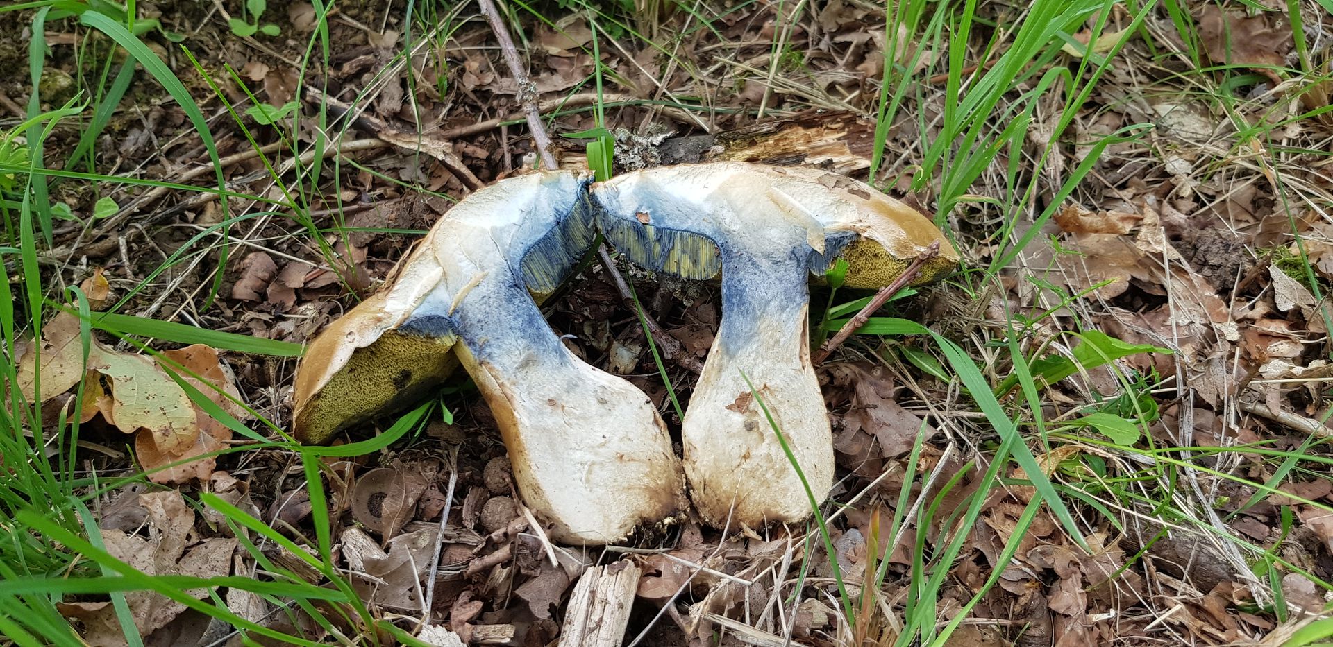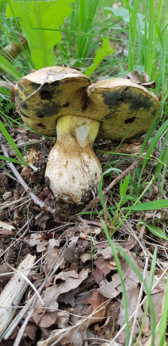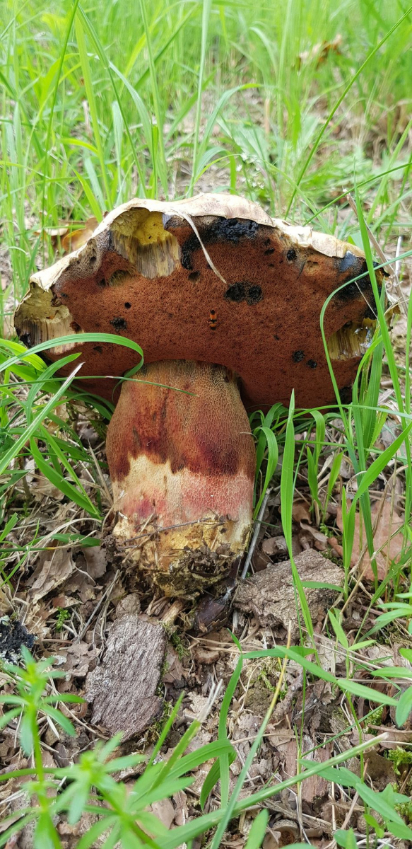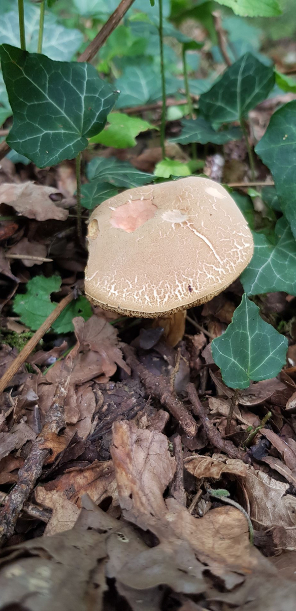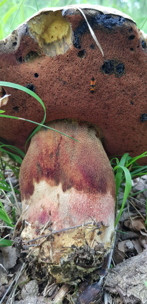 gestern drehte ich nach dem Mähen noch eine Runde über meine Wiese. Angrenzend wachsen da sehr alte Stieleichen und da lohnt sich immer einen Blick drunter. Da entdeckte ich ein riesiger, alter Netzstieliger Hexenröhrling.