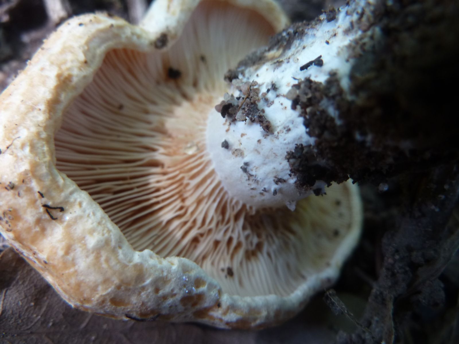 Heute unter alten Eichen und Buchen auf basischem Boden in der Nähe von Beton und Basaltschotter gefunden. Milcht nur spärlich, Geschmack nach kurzer Zeit ordentlich scharf. Wegen der in Stielnähe deutlich queraderigen Lamellen lande ich bei L. acerrimus. Aber da gibt es ja noch ein paar Doppelgänger. Wegen dem deutlich gezonten Hut wäre L. zonarius auch noch eine Option.