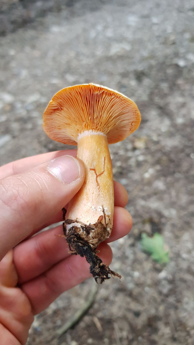 bei den Reizkern bitte immer einen Schnitt durch den Stiel, am besten gerade abschneiden, wegen der Farbe der Milch, die gehören zu den Milchlingen.