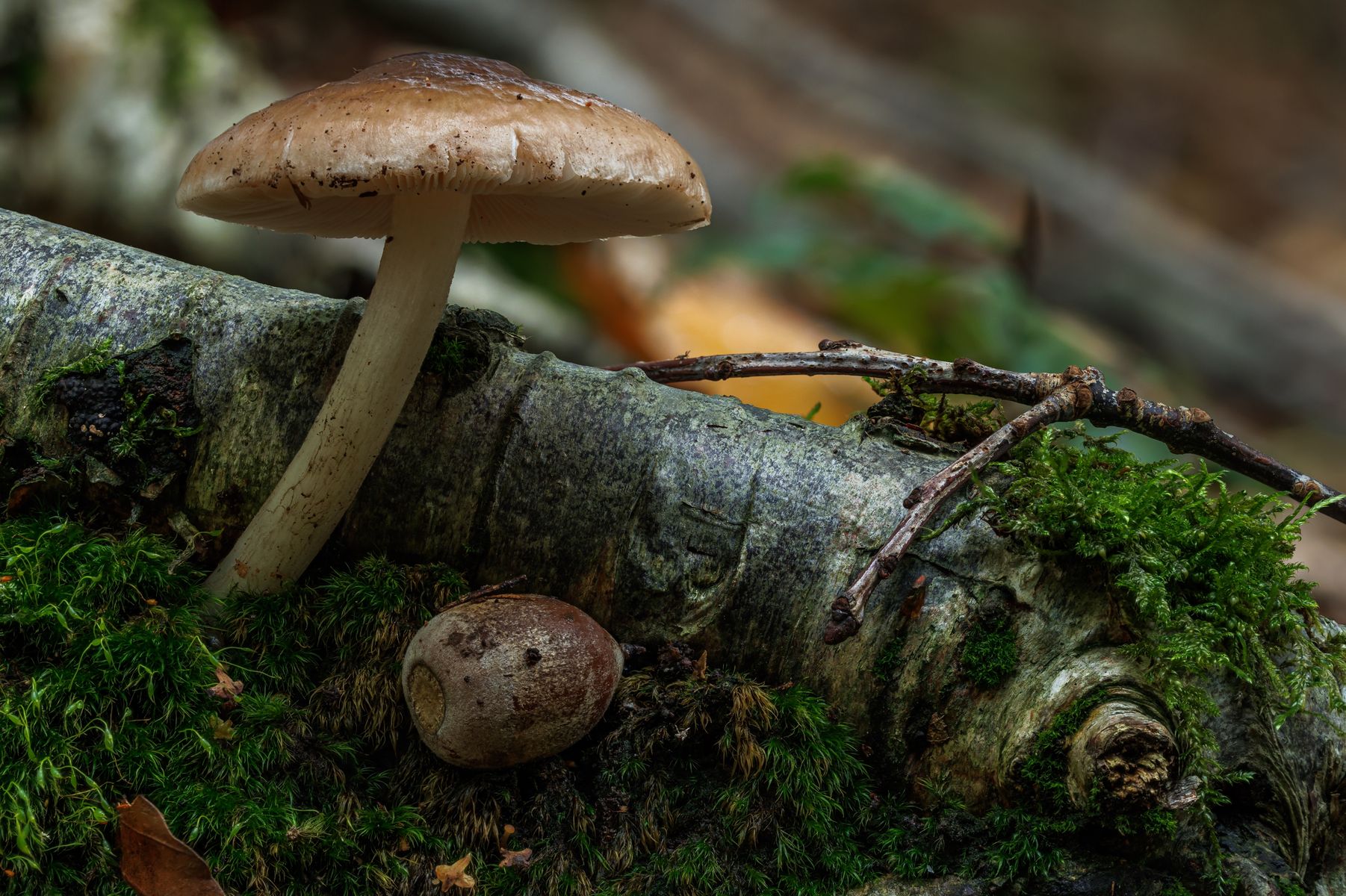 Beige / brauner Pilz mit dunklerer spitzer Kappe / Mischwald / NRW