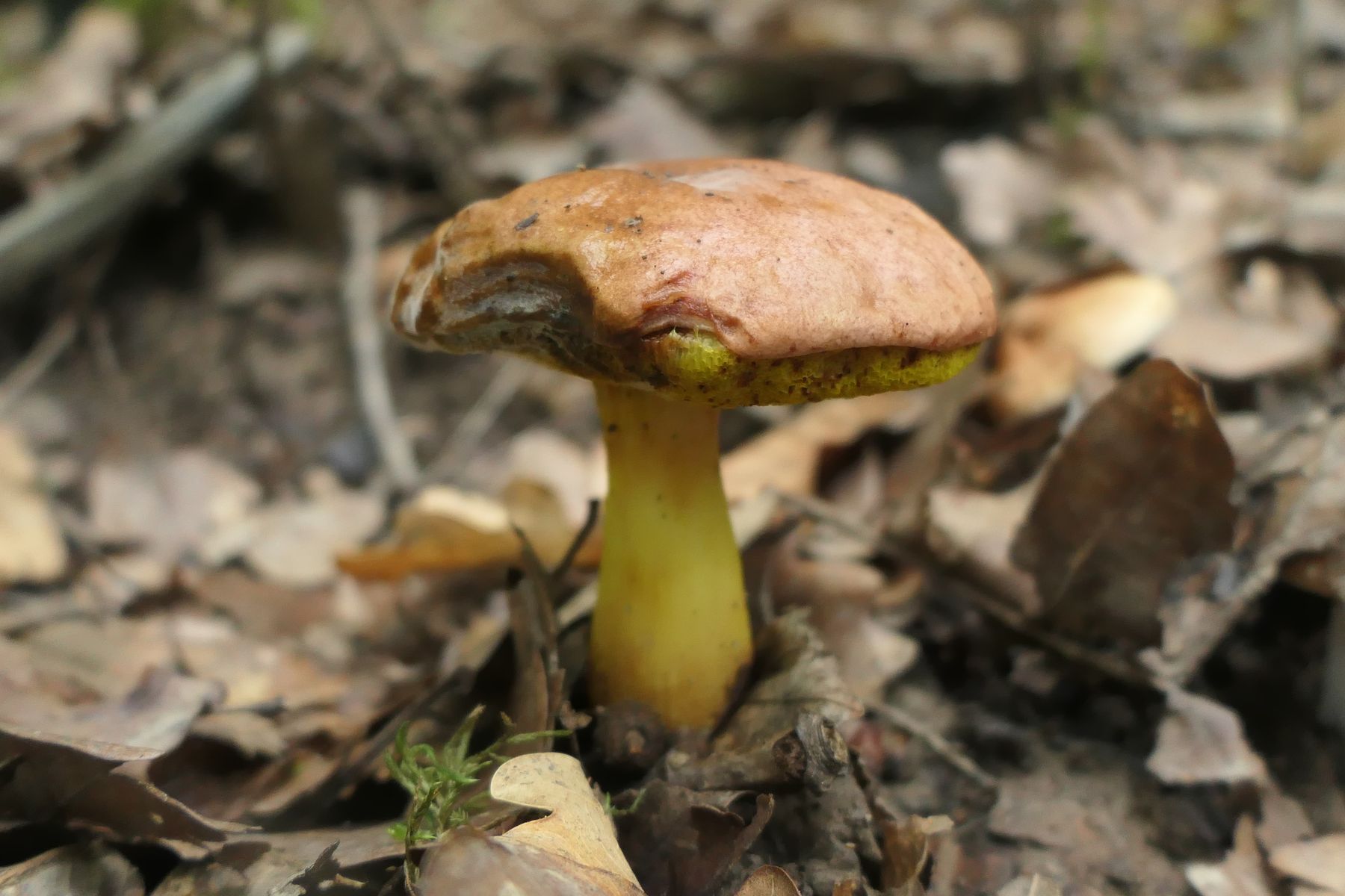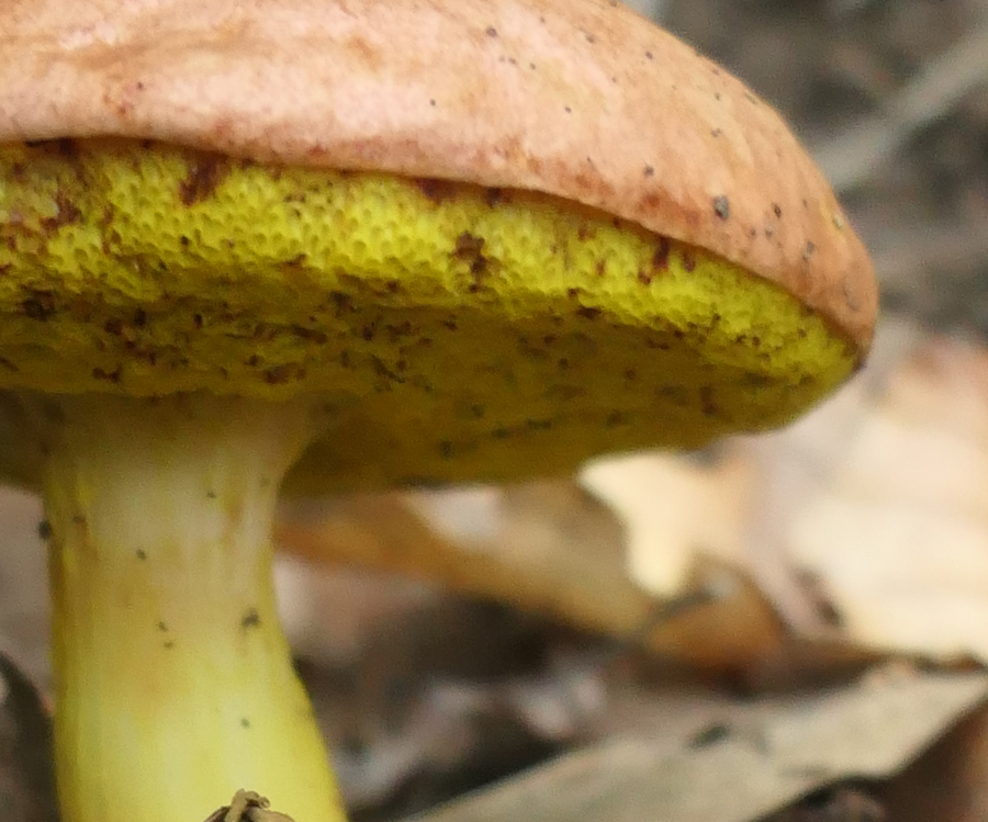 08 Suillelus luridus - Netzstieligen Hexenröhrlings (Oder kann auch Mendax so gelb daher kommen? Das Netz reicht ja nicht komplett herab).
