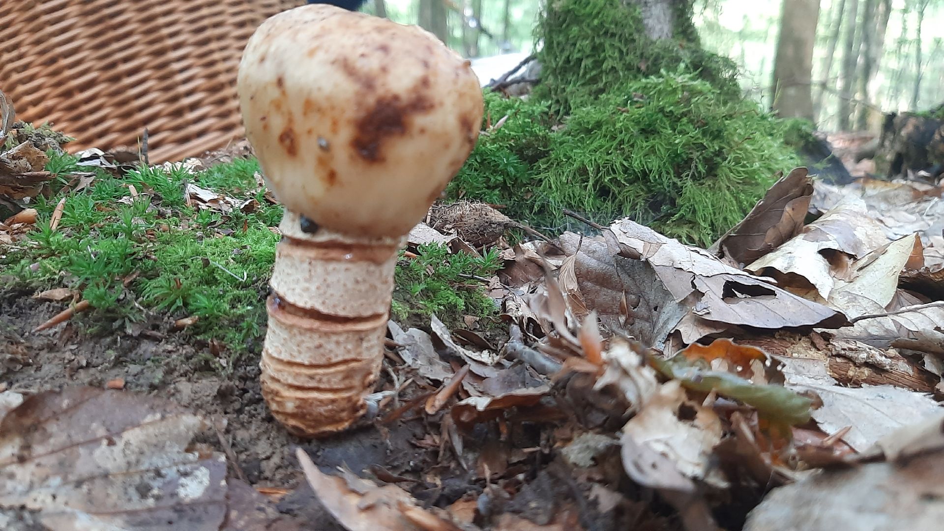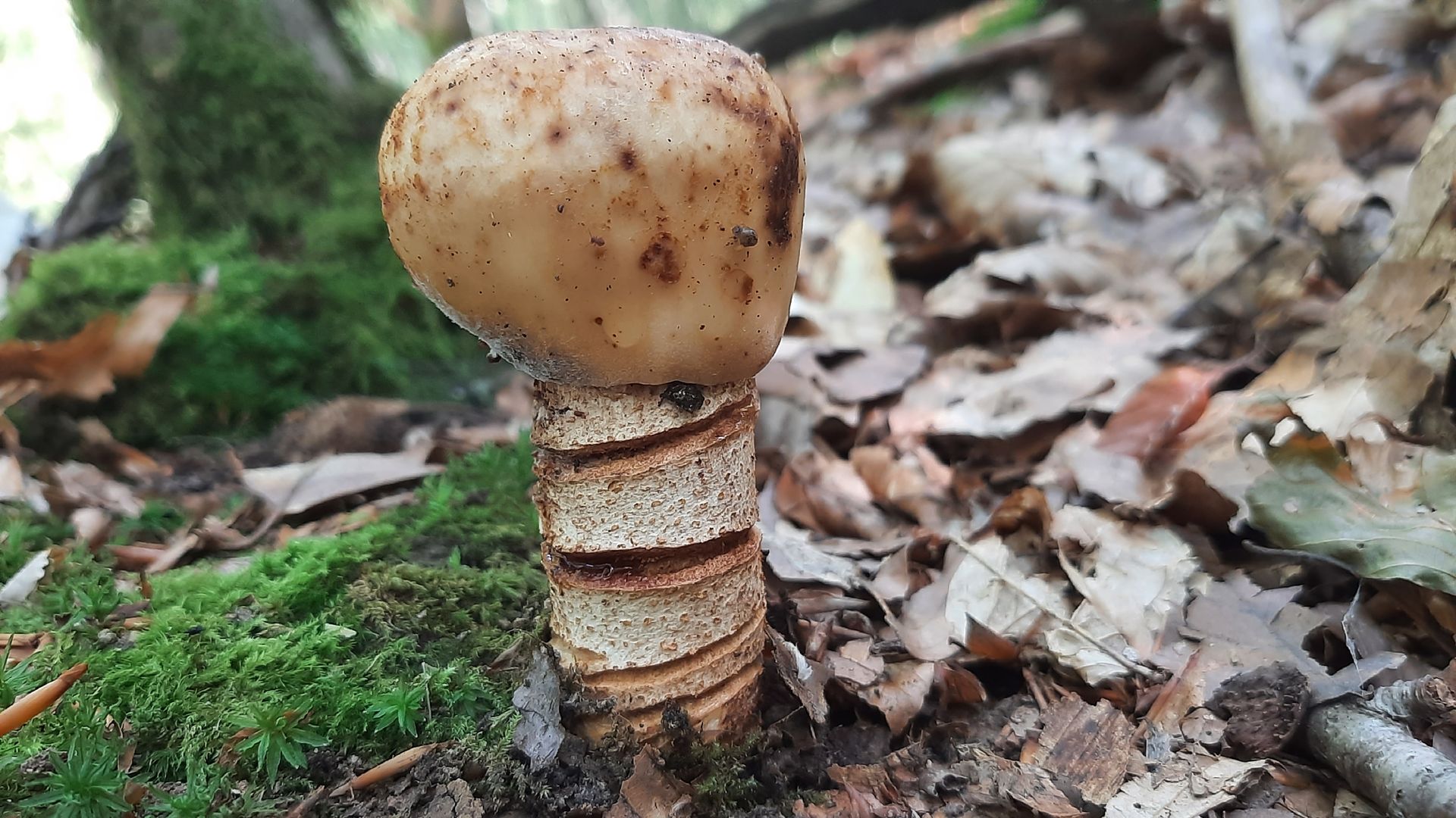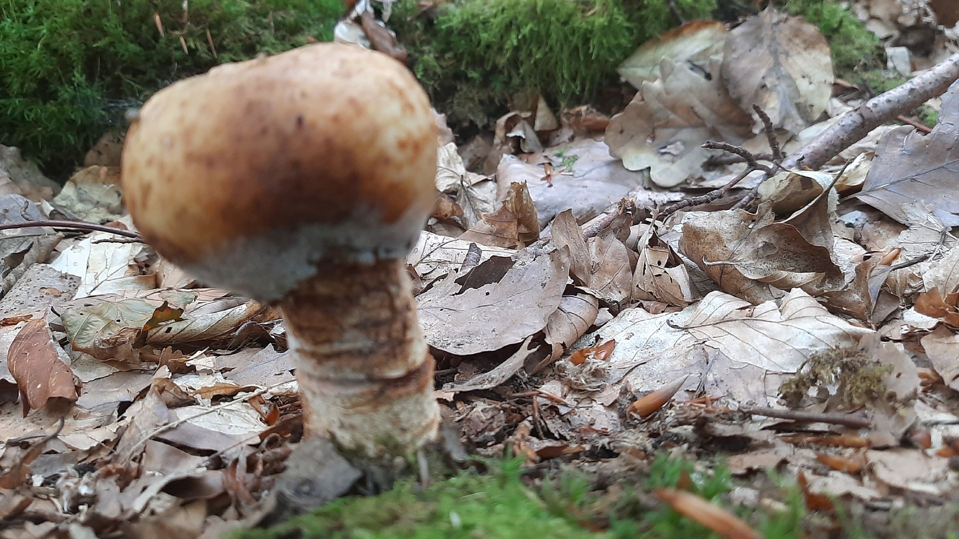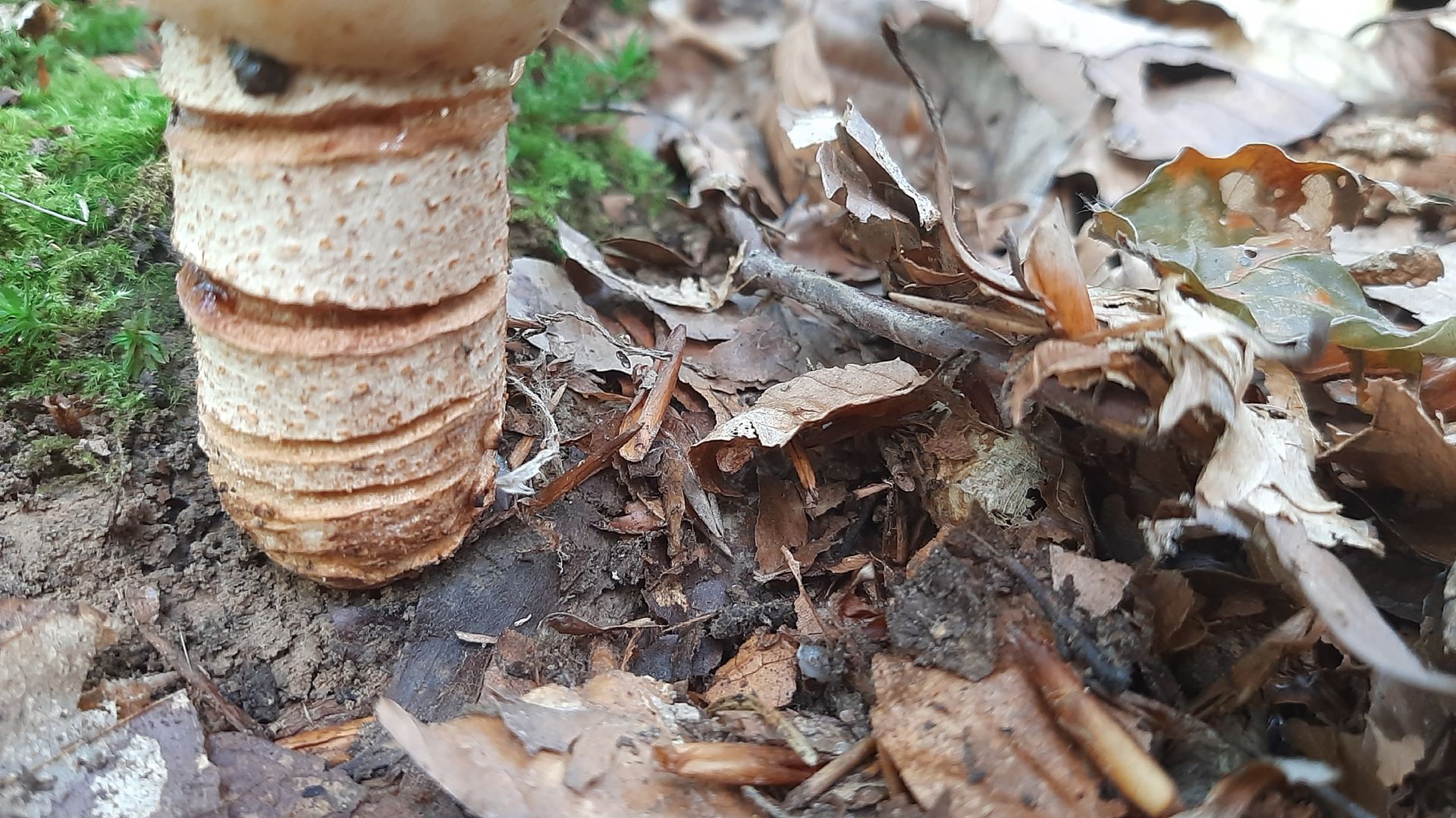 • Hallo zusammen! Diesen " Paukenschlegel mit Trockenschaden" habe ich heute im Mischwald auf Lösslehm, eher basische Bodenverhältnisse, gesehen. Was das wohl ist? Die Einschnitte im Stiel deute ich als Trockenschaden. Aber auch wenn man die sich wegdenkt, bin ich immer noch etwas ratlos. Den Fruchtkörper habe ich stehen lassen, weil ich morgen oder übermorgen noch mal nachschauen möchte. Vielleicht hat schon jemand einen Tipp parat?