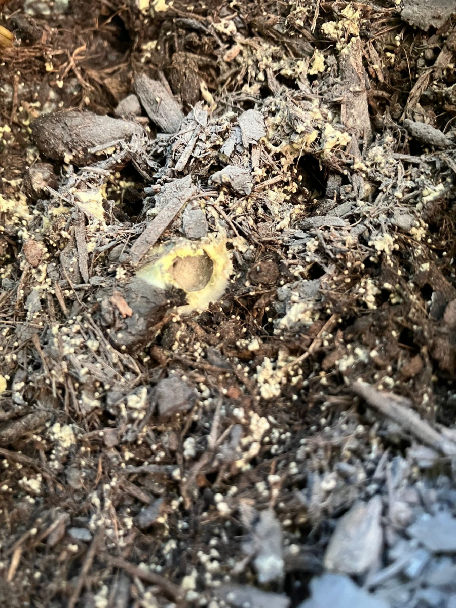 dieses vertrocknete, aber trotzdem schöne Expemplar durfte ich heute morgen im Topf meiner Efeutute bestaunen.