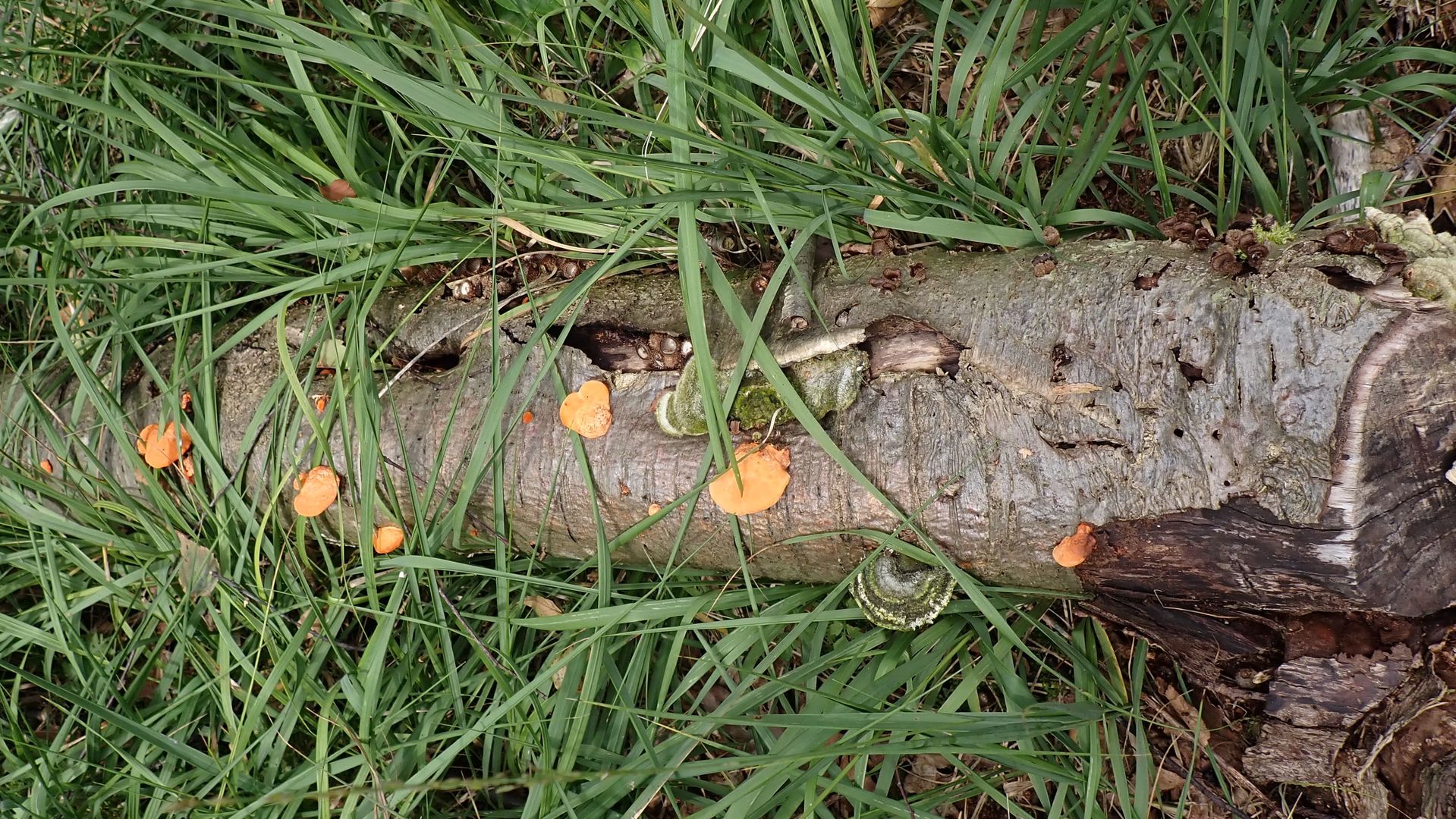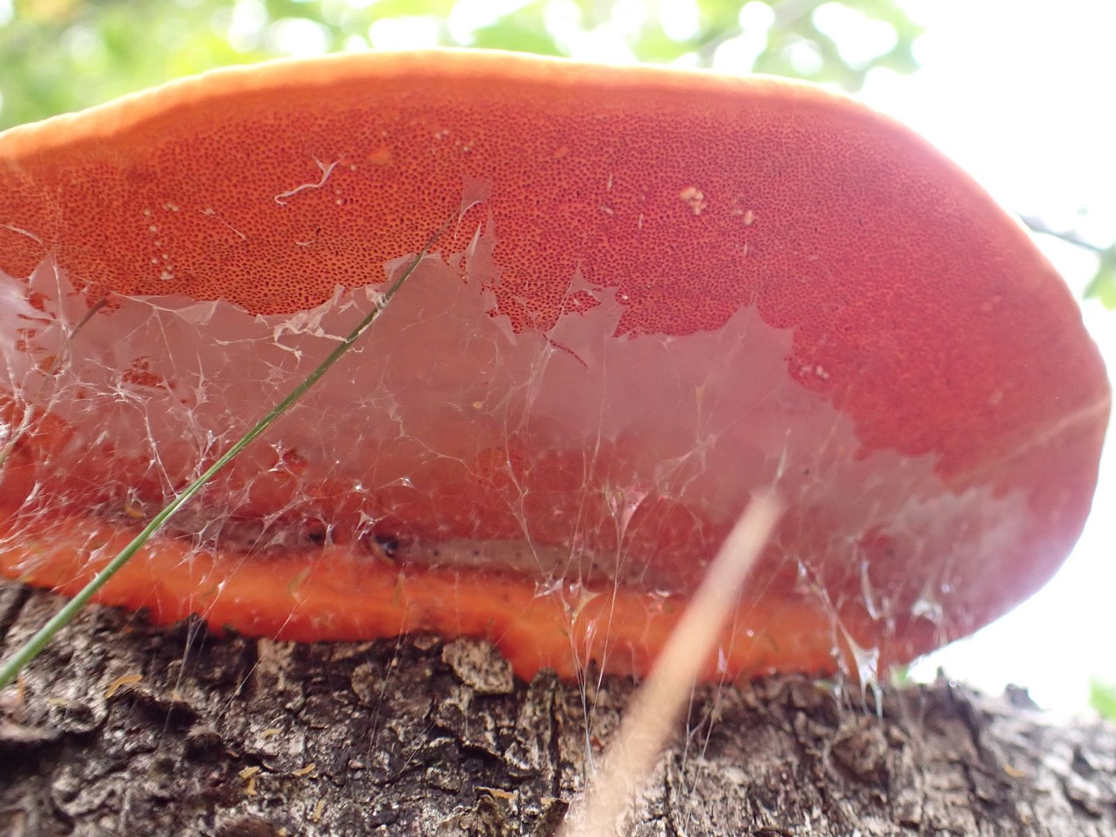 Ich würde die auch als Zinnober-Tramete ansprechen. Die Farbe ist eindeutig. Den Zimtfarbenen Weichporling hatten wir ja auch an Birke, aber der ist eben viel blasser und Zimtfarbener