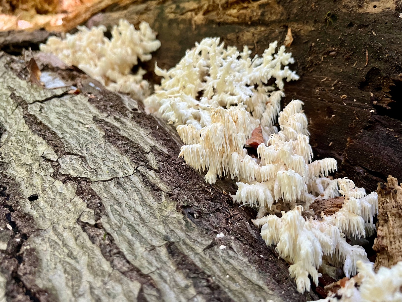 Aber was mich wirklich interessiert: Müssen die Stämme tatsächlich immer fast verrottet sein, damit sich de Stachelbärte wohl fühlen? Sterbende Buchen sind ja immer mit irgendwelchen Pilzen besiedelt. Zunderschwamm, Schmetterlingstrameten, Austern etc.. Lassen diese Pilze denn überhaupt die Besiedlung mit Stachelbärten zu? Oder besiedeln die Stachelbärte auch Stämme, die noch nicht so morsch sind und bringen nur noch keine Fruchtkörper hervor, so lange andere Pilze darauf wachsen?