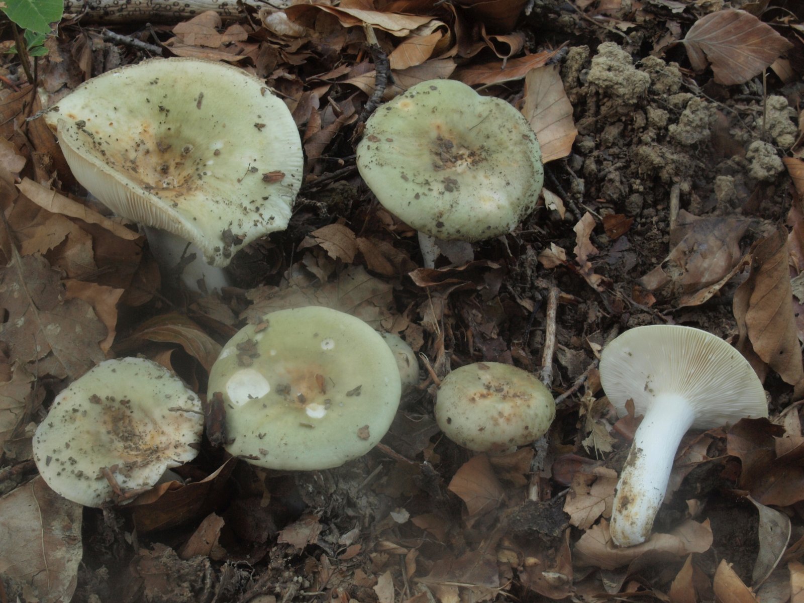 Russula cyanoxantha (Frauentäubling) begegnete uns mehrfach und immer mit Grüntönen