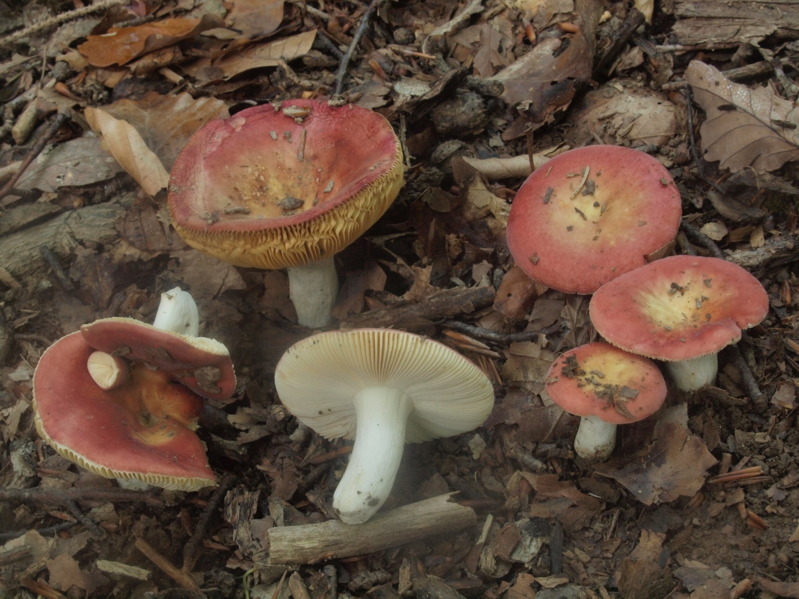 Bei der Mühsame Suche in roten Teppichen zur Vermeidung von Mischkollektionen bliebe letztlich drei Arten ürig. Auf Einzelexemplare wie Russula rubra und weitere Arten wurde aus Zeitgründen verzichtet