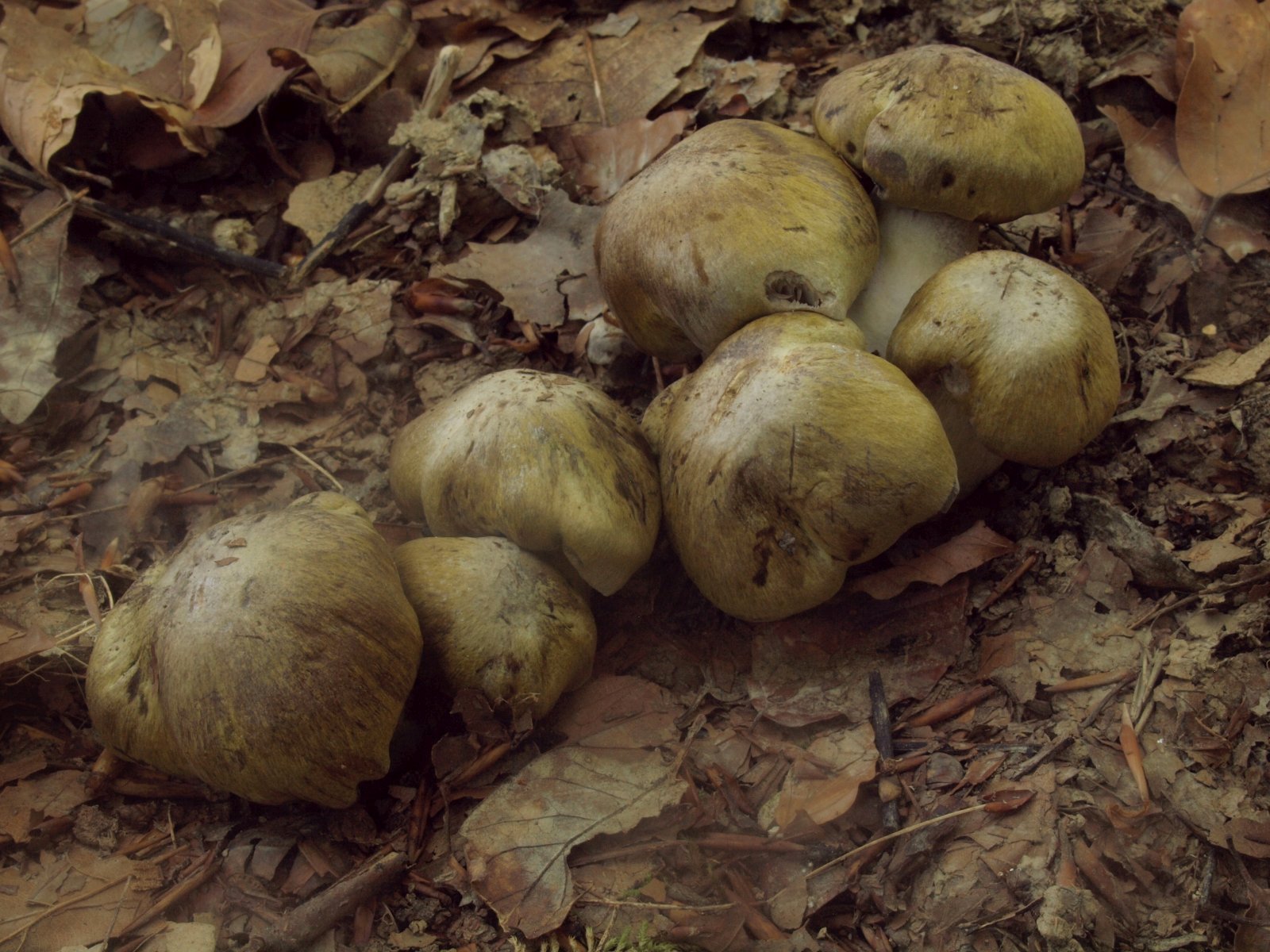 Russula cyanoxantha (Frauentäubling) begegnete uns mehrfach und immer mit Grüntönen