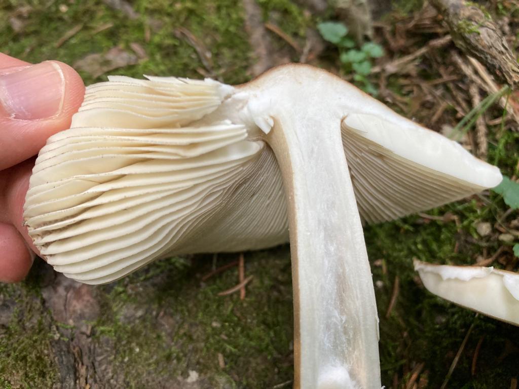 . Röhrlinge fast gar keine.Bei diesem hier bin ich mir absolut unsicher. Ist das ein Wulstling? Unten hatte er eine glitschige Volva. Die Lamellen waren nicht brüchig. Geruch unauffällig: