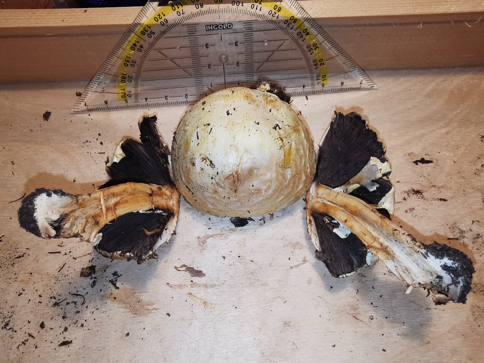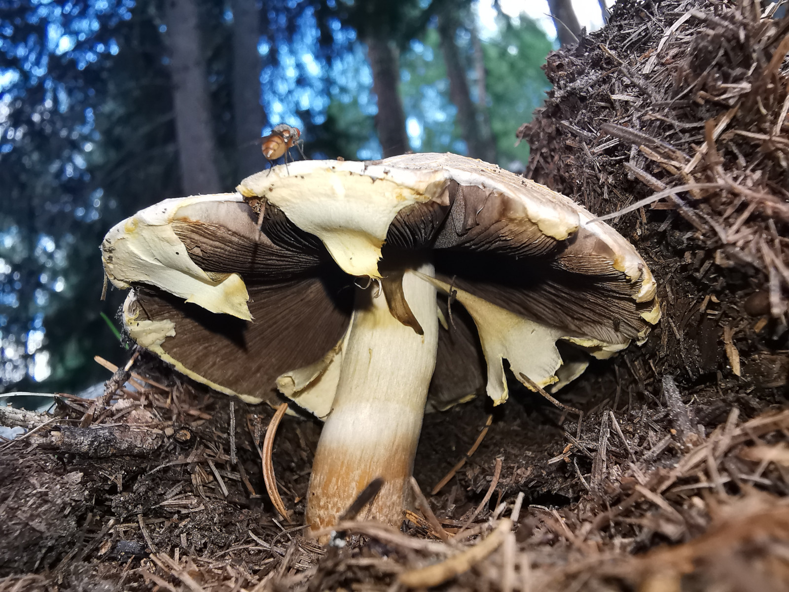 Ich habe heute im Nadelstreu einer Fichte ein paar Champignons gefunden und wollte mal mein neues Agaricus-Buch von G. Kibby testen. Leider ist die Gruppe sehr kniffelig und ich bin mir wieder nicht sicher, ob ich richtig liege. Mit dem Schlüssel im Kibby komme ich zum Dreierpack A. sylvicola, A. abruptibulbus und A. essettei, die laut Buch nur durch eine DNA-Sequenzierung trennbar sein sollen. Was nicht so ganz passt, ist, dass im Schlüssel steht, dass der Stiel normalerweise länger ist, als der Hutdurchmesser, bei mir ist er aber bei beiden kürzer. Kann das auch ziemlich variieren oder denkt ihr, dass ich im Schlüssel irgendwo falsch abgebogen bin? Der Geruch ist angenehm nach Anis. Ich habe zwei Pilze mitgenommen, die etwa einen Meter voneinander entfernt wuchsen. Hier die Fotos: