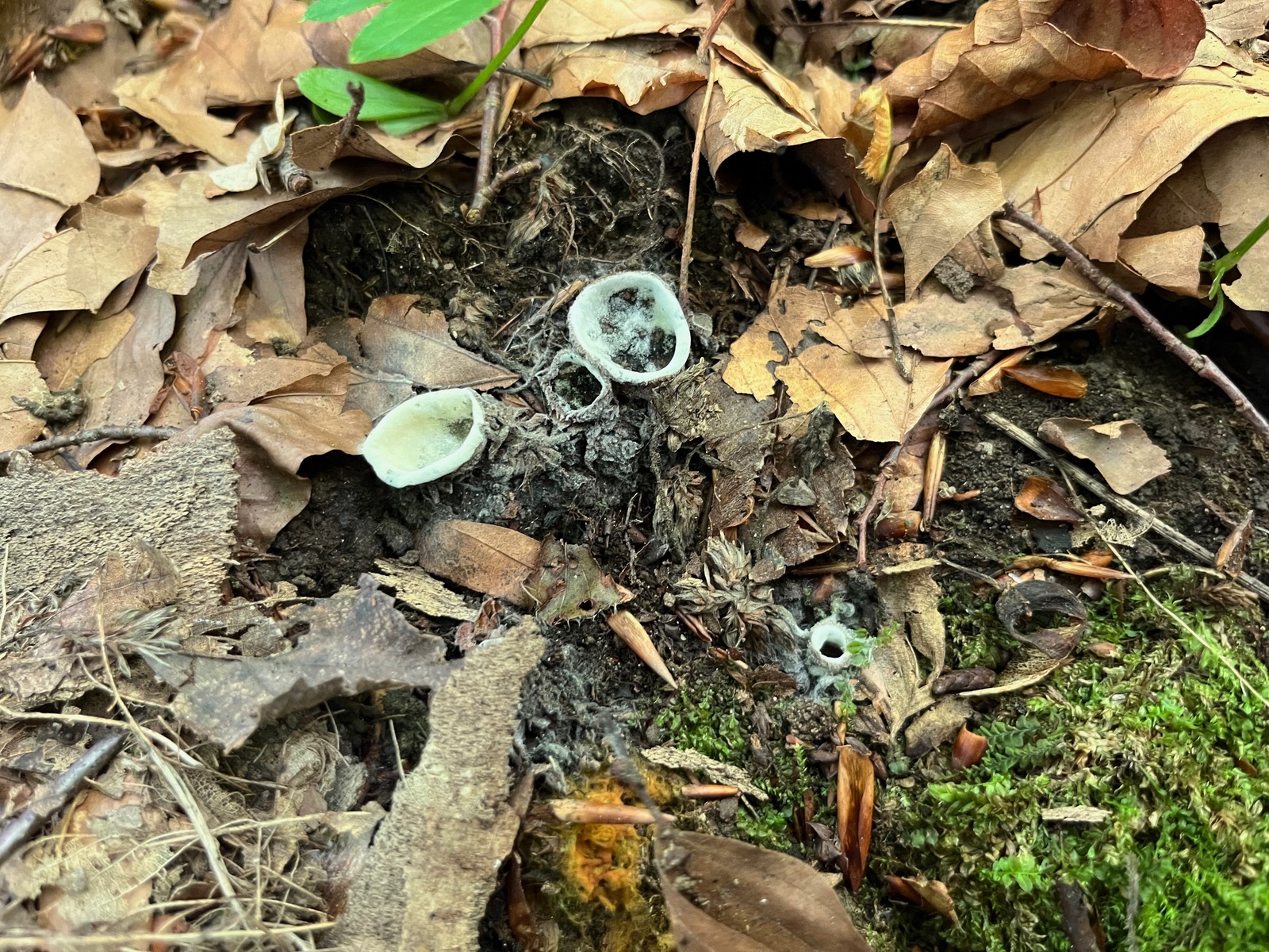 Die kleinen bis 3 cm Durchmesser großen Fruchtkörper wuchsen in der Nähe eines baufälligen Gebäudes am Boden zwischen verrottetem Holz in der Laubstreu. Das Hymenium hat eine porzellanähnliche weiße Farbe. Die Fruchtkörper sind halbkugelig. Das Fleisch ist zäh.