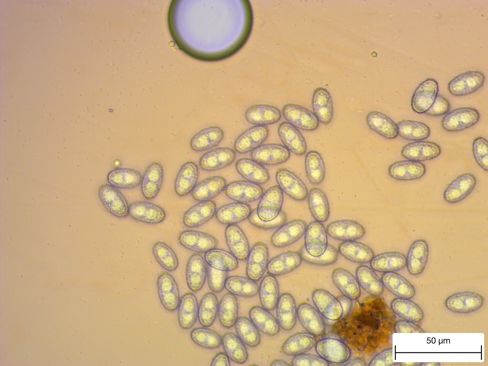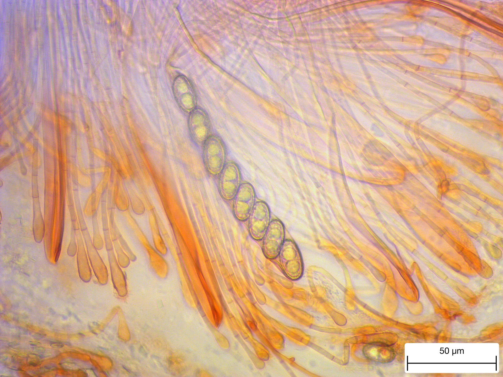 5. Auffällig sind die septierten Paraphysen; Asci mit 8 Sporen.
