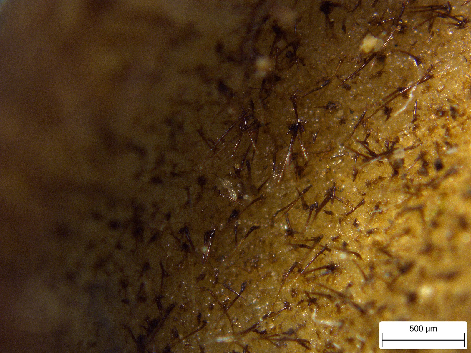 4. Die Außenseite der Halbkugeln ist mit kleinen spitzen braunen Borsten übersät.
