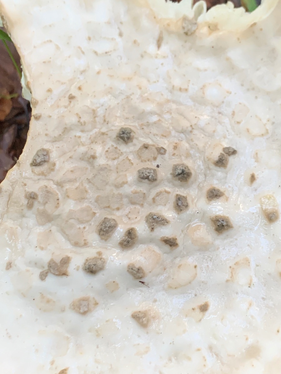 Auffällig war bei diesem wuchtigen Amanita der unangenehme bzw. leicht spermatische Geruch und die schwarzen sowie blasseren Schuppen auf dem Hut.