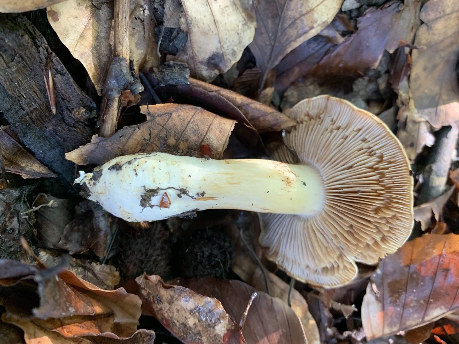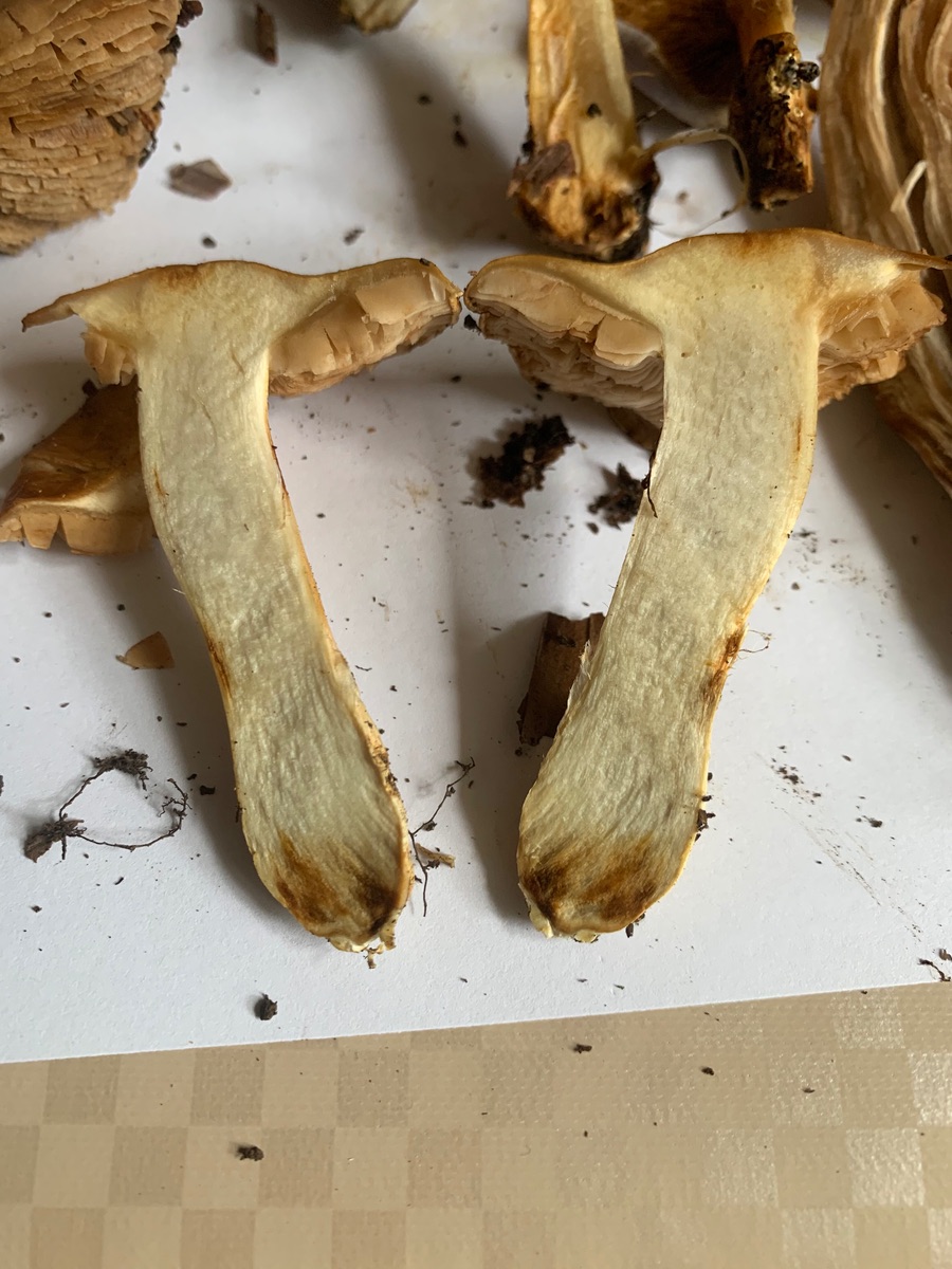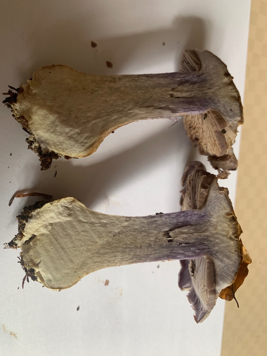 Leider habe ich von der Art kein Schnittbild vorliegen. Es dürfte sich in jedem Fall um etwas aus dem Bereich Dickfuß/Klumpfuß handeln, da der Pilz weder einen klebrigen Hut noch Stiel hatte.