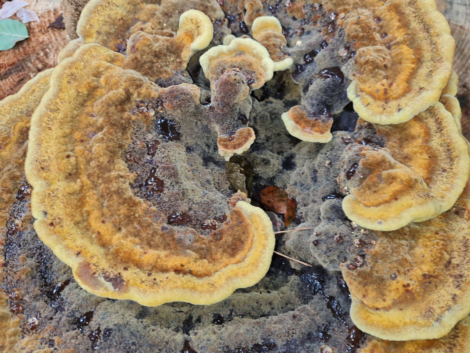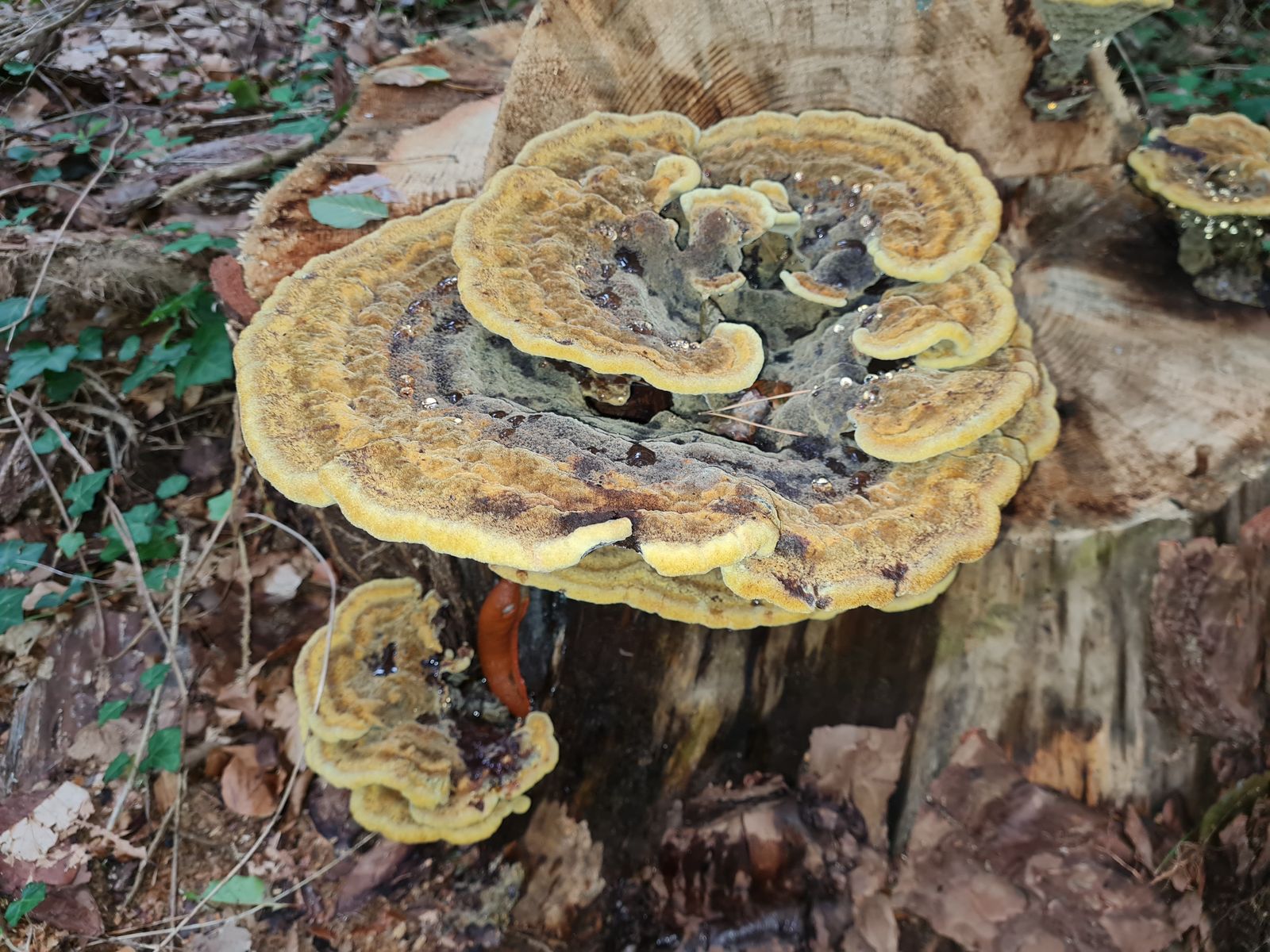 Wenn ich so in mein Buch gucke, dann würde der Gestielte Filzporling dazu passen. Allerdings soll der auf Nadelholz wachsen und ich vermute bei dem Baumstumpf eher Laubholz ![]()
