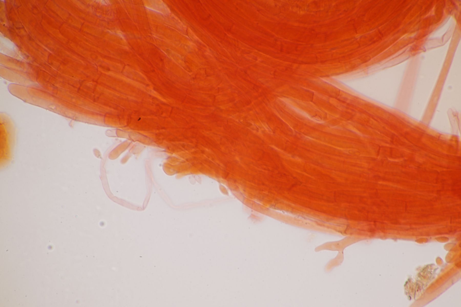 6. Und zum Abschluß noch eine Clitocybe, die am Wegrand im Wald wuchs. Geruch nach Gummi, Sporen tendentiell tropfenförmig und messen 6.6+-0.4 x 4.0+-0.2 µm, Q=1.7+-0.1, 6.1-7.3 x 3.7-4.3 µm, Q=1.5-1.8. Beim Antrocknen wurde der Hut etwas dunkler, aber hygrophane Hüte sollten ja das Gegenteil tun. Wenn ich mich dann durch den Gröger Teilschlüssel a kämpfe, komme ich aber zu keinem gescheiten Ergebnis.