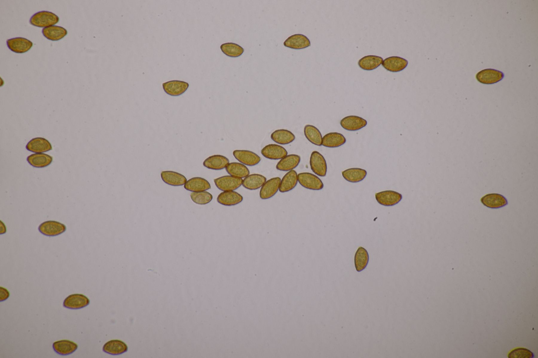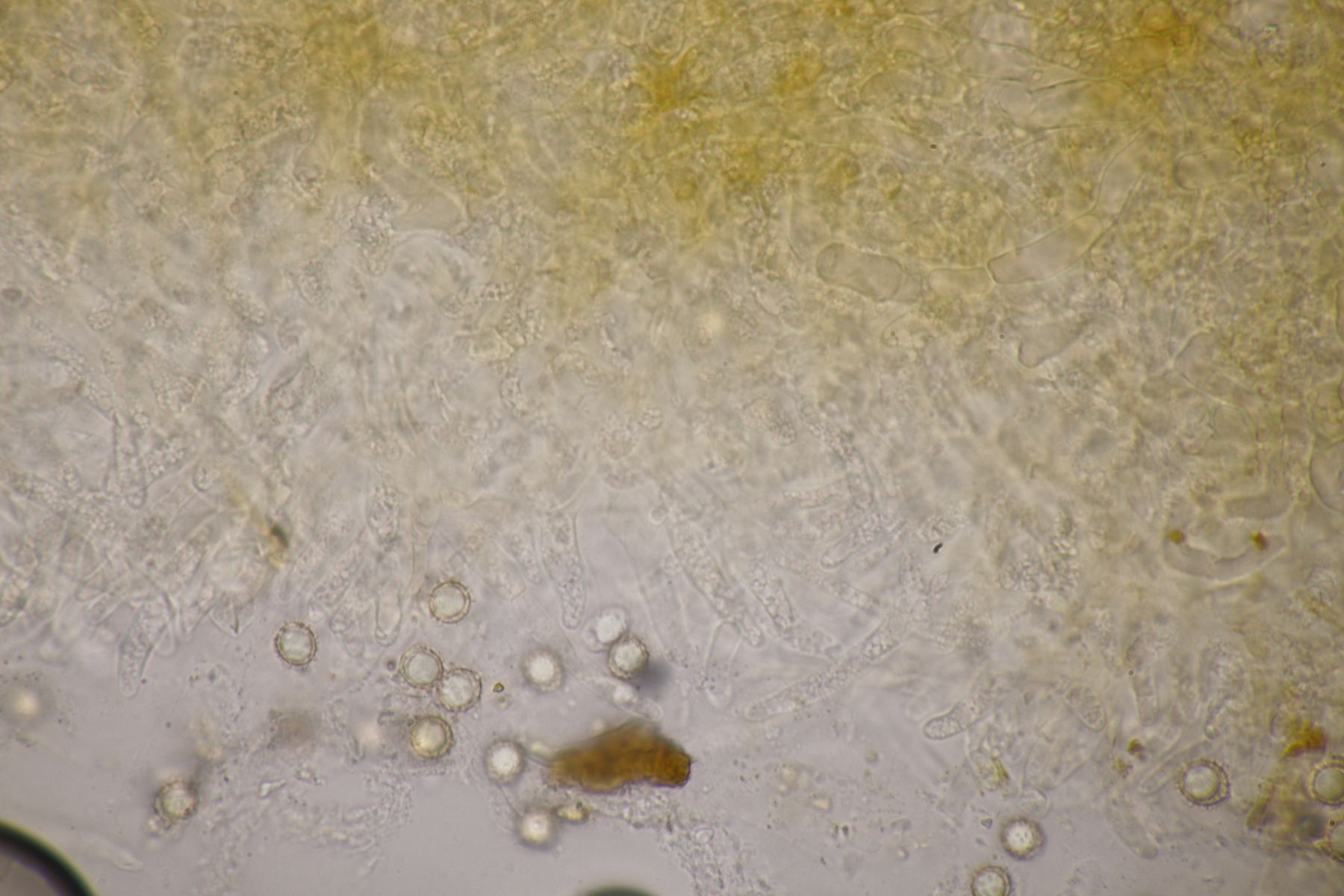 9. Ein Lactarius, bei dem ich noch zweifel. Der Geschmack war typisch L. subdulcis, aber vor Ort wirkten die Fruchtkörper wie auf dem Bild zu erkennen schon deutlich orange, was zu L. aurantiacus passen würde. Sporen messen 7.3+-0.3 x 6.5+-0.3, Q=1.1+-0.0, bzw. 6.8-7.8 x 5.9-7.1 µm, Q=1.1-1.2, was aber zur Trennung der beiden Arten nicht taugt.