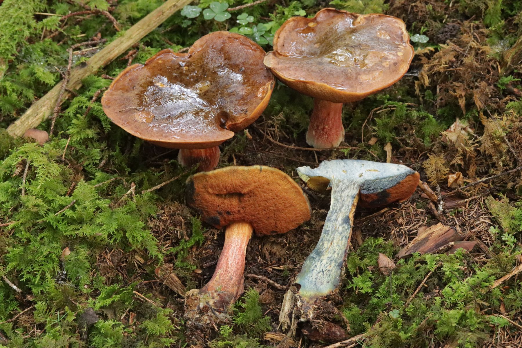 15. Unter Fichte gab es diese hübschen Phlegmacien mit weißlichem Fleisch, das mit KOH orange verfärbt. Da lande ich bei Phlegmacium varium. Manchmal ist Cortinarienbestimmung doch einfach.