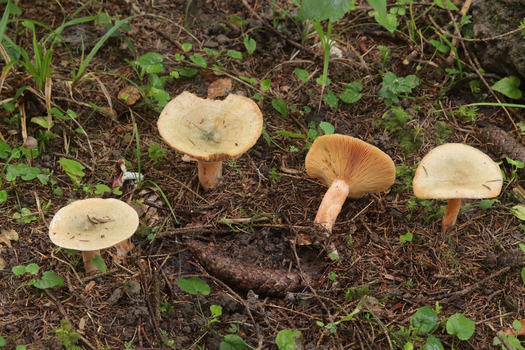 Ich nehme momentan nur noch kleine orangebraune Milchlinge mit und prüfe auf L. cremor mit runden Sporen, die ich im gleichen Gebiet in diesem Jahr schon zweimal dabei hatte. Teilweise in engem räumlichen Zusammenhamg mit björns Fund.
