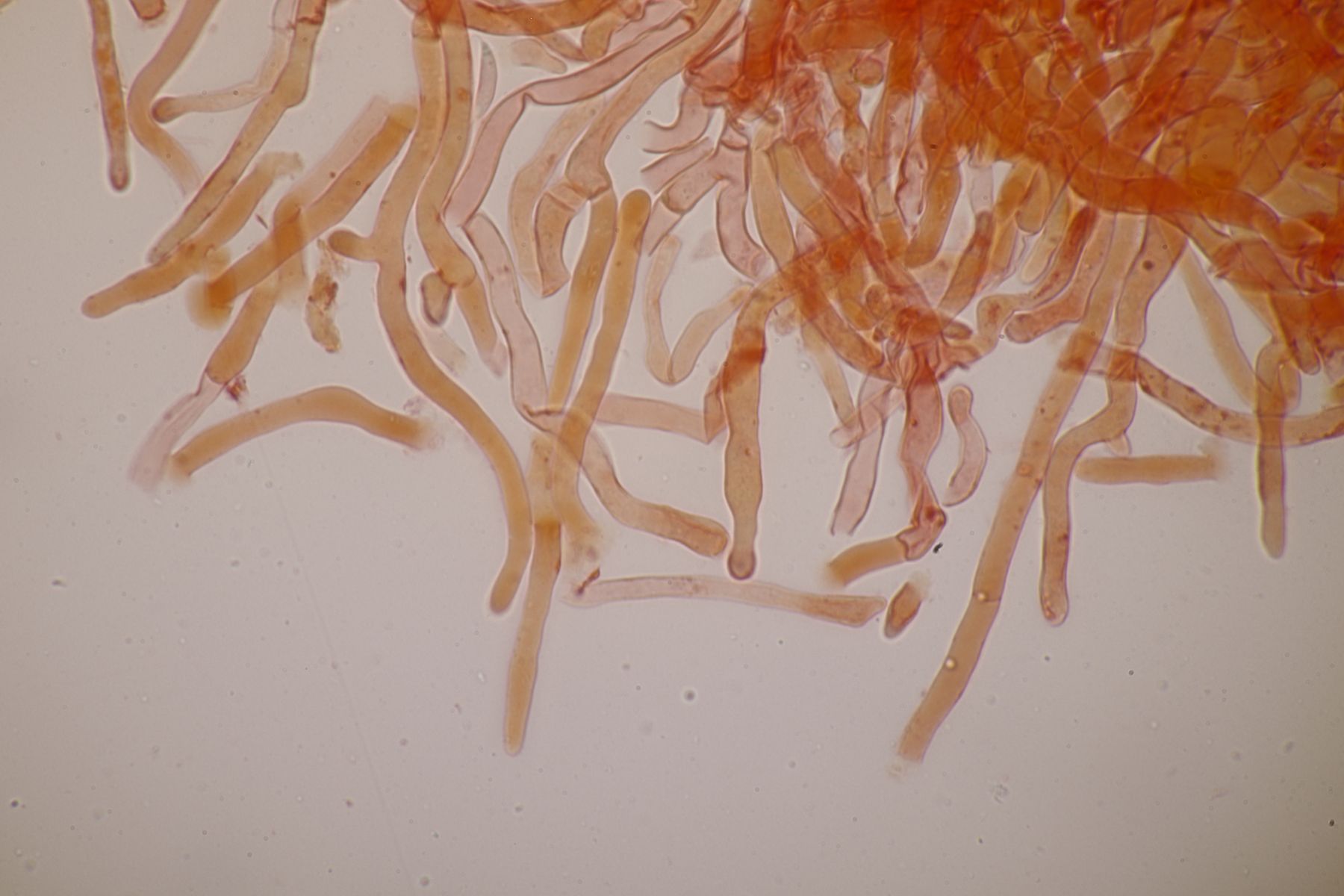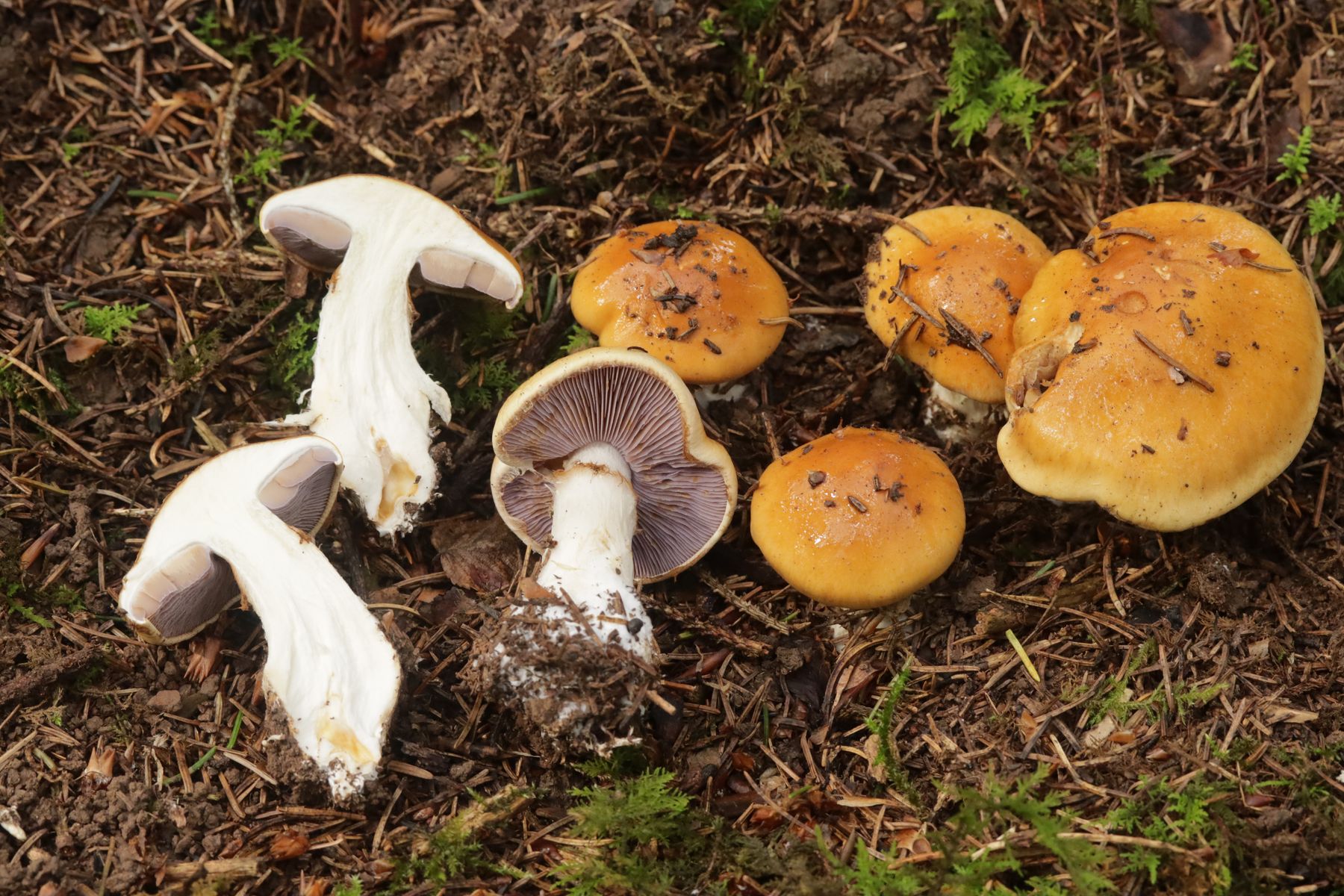 15. Unter Fichte gab es diese hübschen Phlegmacien mit weißlichem Fleisch, das mit KOH orange verfärbt. Da lande ich bei Phlegmacium varium. Manchmal ist Cortinarienbestimmung doch einfach.