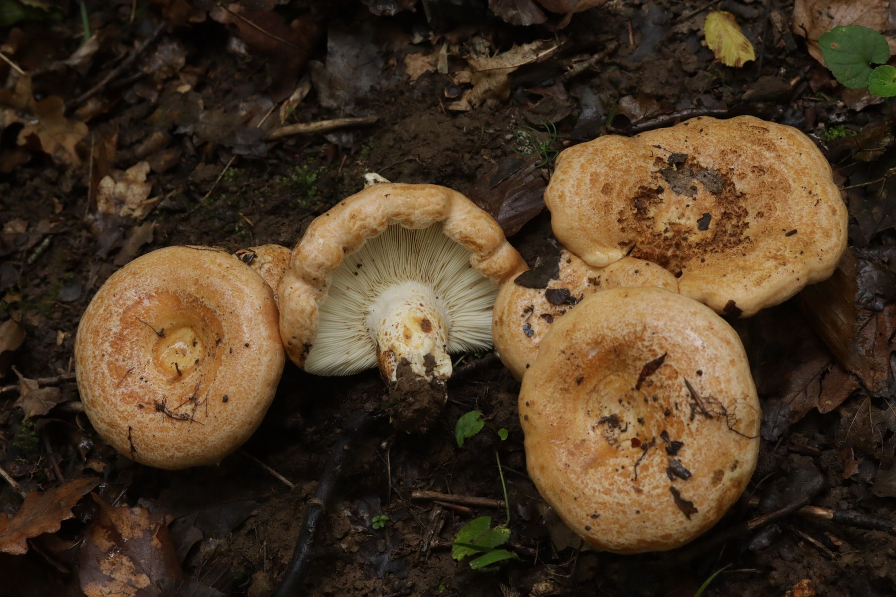 Ich nehme momentan nur noch kleine orangebraune Milchlinge mit und prüfe auf L. cremor mit runden Sporen, die ich im gleichen Gebiet in diesem Jahr schon zweimal dabei hatte. Teilweise in engem räumlichen Zusammenhamg mit björns Fund.