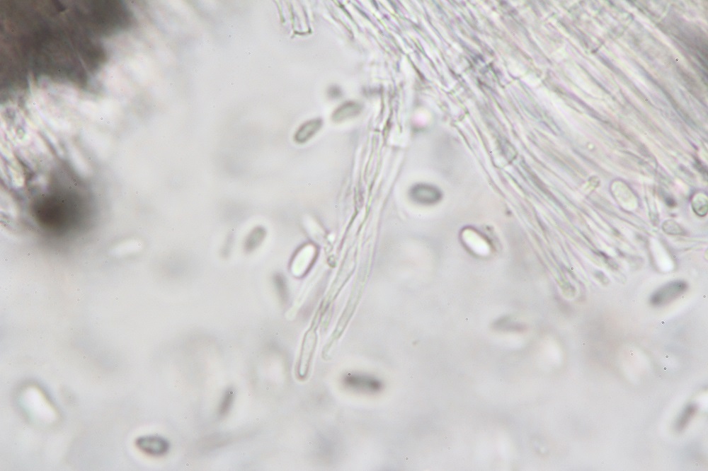 Zuhause habe ich das Teil Mikroskopiert und gerätselt, welche Stilbella nicht auf Dung wächst, aber wie S. fimetaria aussieht.