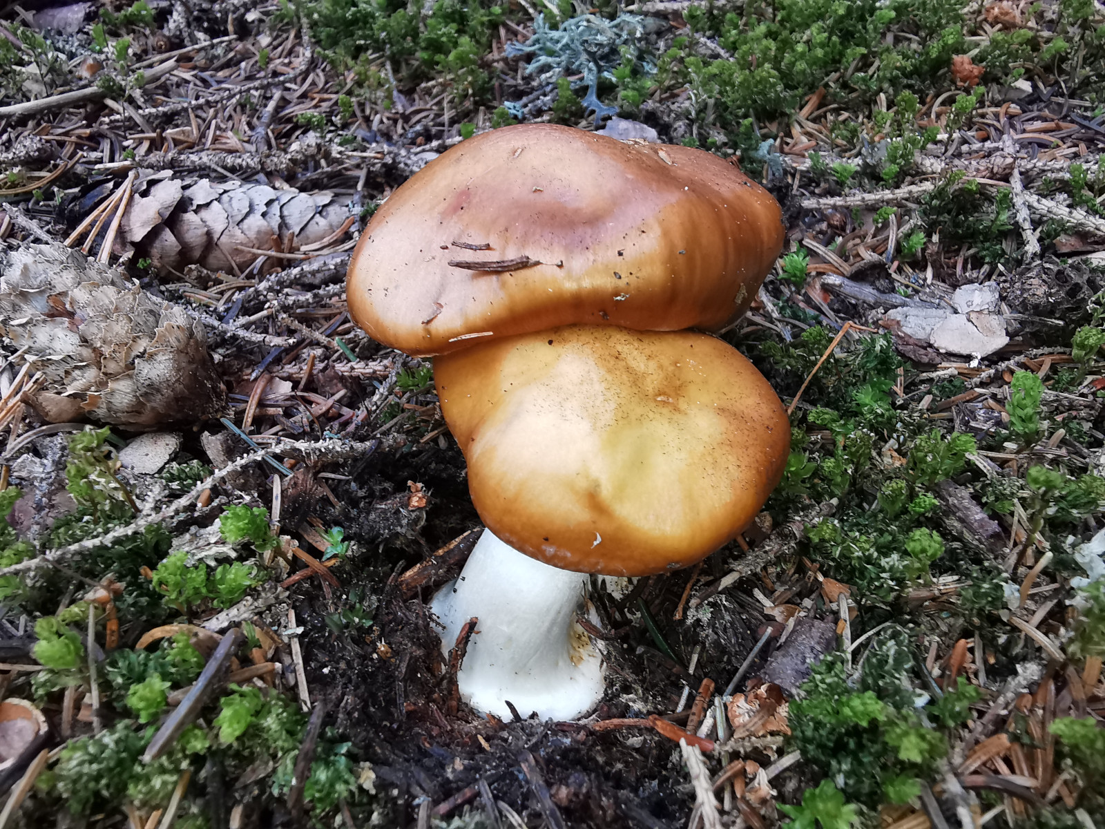 Ich habe heute bei einer Fichte (ca. 1800m) diese kleinen Schleierlinge (der gössere hat einen Hutdurchmesser von 4cm) gefunden. Auf dem Stiel sehe ich weissliches Velum, Geruch kann ich nicht viel feststellen, KOH im Fleisch ist negativ (ausser im Hutfleisch leicht bräunlich), auf dem Hut bräunlich. Beim Schlüsseln bin ich in Richtung Corintarius multiformis gekommen, aber irgendwie scheint das auch nicht so richtig zu passen. Einen Honiggeruch konnte ich nicht feststellen. Im PdS steht bei C. multiformis zur KOH-Reaktion auf Hutfleisch schwach hellbraun (was soweit ich sehe passen würde), im Kibby nur negativ. Vielleicht habt ihr ja eine Idee. Hier die Fotos: