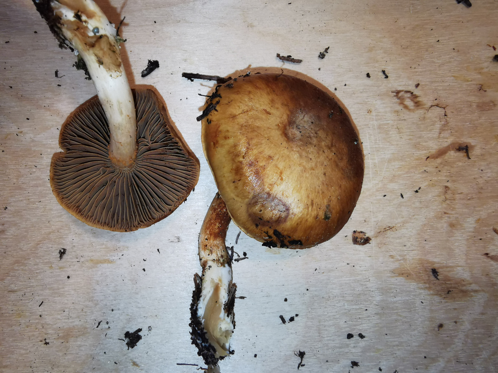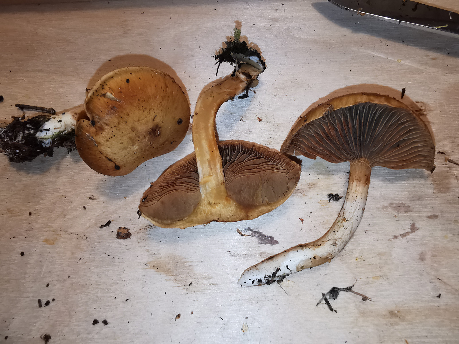 Ich habe heute bei einer Fichte (ca. 1800m) diese kleinen Schleierlinge (der gössere hat einen Hutdurchmesser von 4cm) gefunden. Auf dem Stiel sehe ich weissliches Velum, Geruch kann ich nicht viel feststellen, KOH im Fleisch ist negativ (ausser im Hutfleisch leicht bräunlich), auf dem Hut bräunlich. Beim Schlüsseln bin ich in Richtung Corintarius multiformis gekommen, aber irgendwie scheint das auch nicht so richtig zu passen. Einen Honiggeruch konnte ich nicht feststellen. Im PdS steht bei C. multiformis zur KOH-Reaktion auf Hutfleisch schwach hellbraun (was soweit ich sehe passen würde), im Kibby nur negativ. Vielleicht habt ihr ja eine Idee. Hier die Fotos: