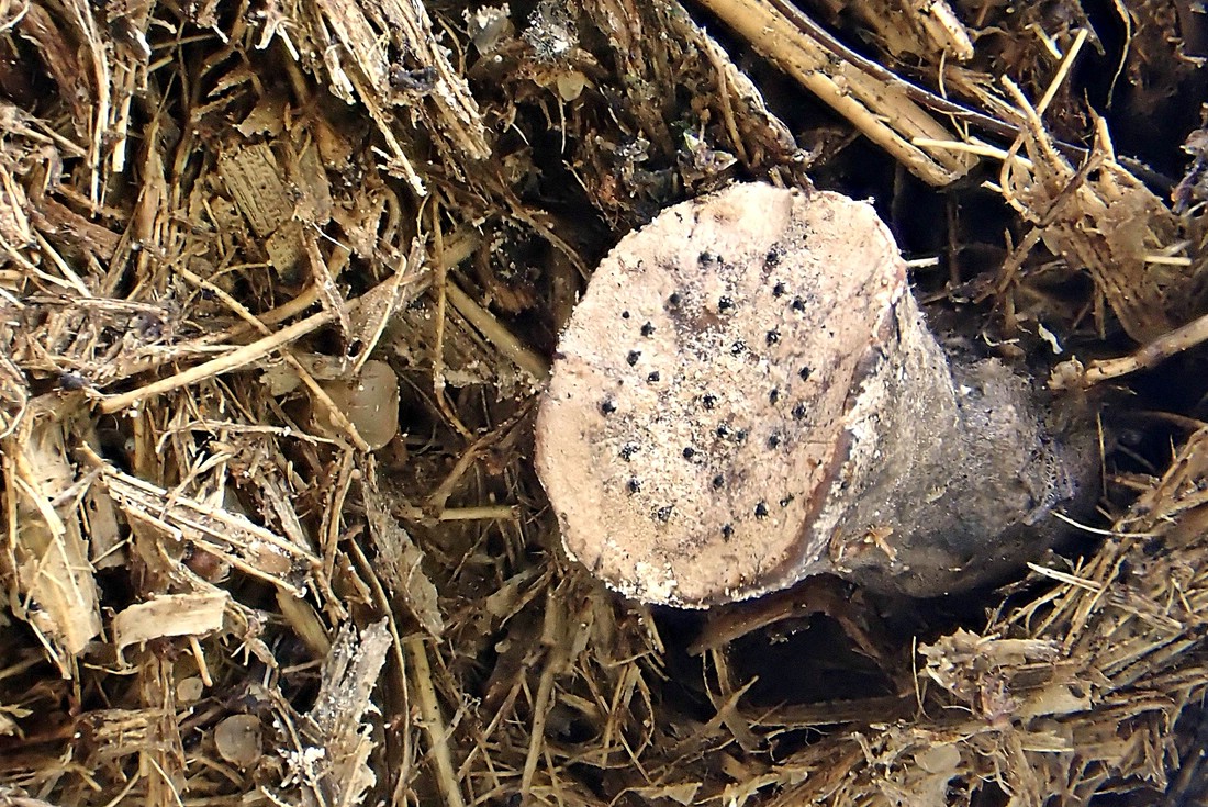 Es handelt sich um Podosordaria tulasnei, an dessen gestieltem Stroma sich im oberen Bereich die Perithecien entwickeln. Sitzt der Fruchtkörper anfangs noch tief im Substrat…