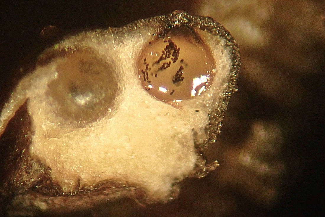 Fix die Pilzlein unter die Lupe genommen und tatsächlich es war Poronia punctata. Da war die Freude groß.“