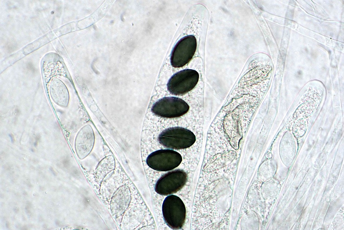 Die Asci sind +/- uniseriat, während die Sporen eine durchgehende Keimspalte aufweisen.