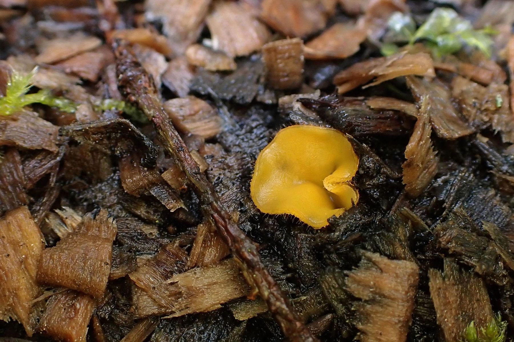 Laut Nordic Macromycetes (Vol. 1, Ascomycetes) kann der Pilz bis 6 cm groß werden, hier waren es nur wenige Millimeter.