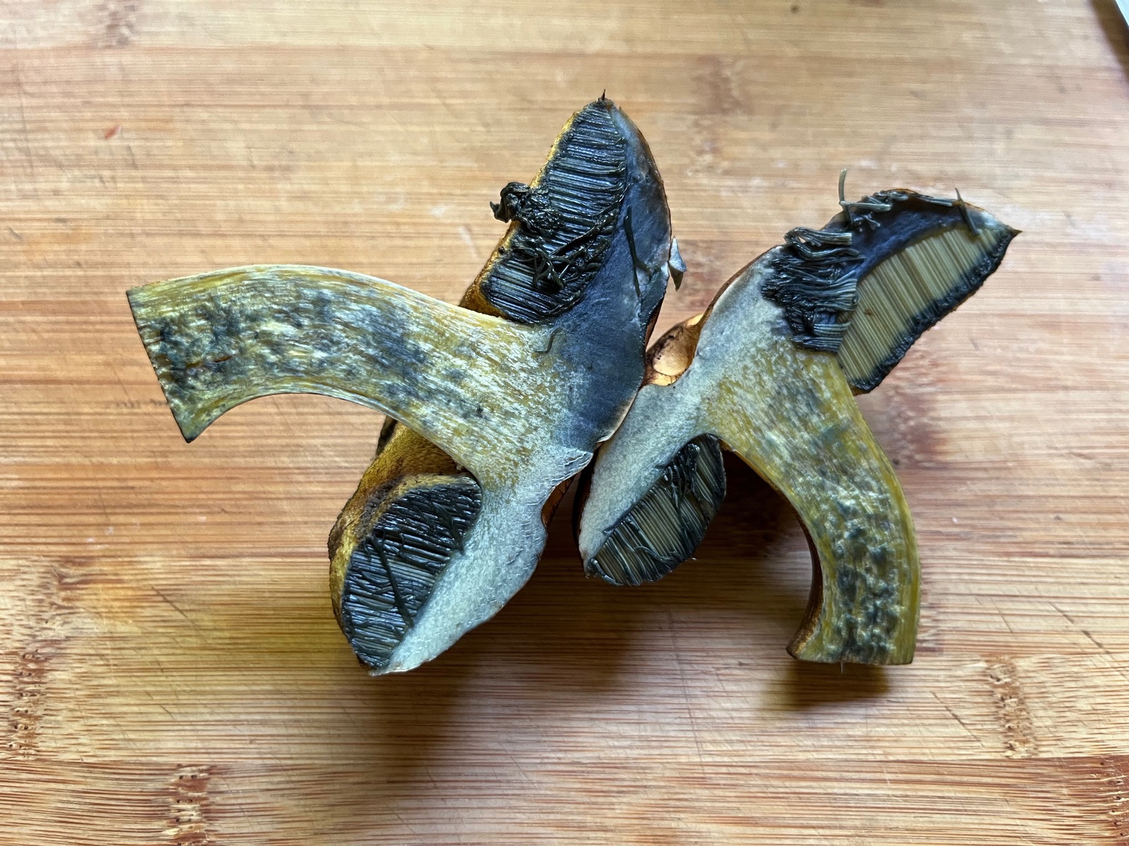 Wir haben den Pilz im Onlinetreffen diskutiert, aber da gab es auch keine wirklich überzeugende Idee. Bei der Gattung Butyroboletus wurde ich nicht fündig, auch der vorgeschlagene Nadelholzröhrling - Buchwaldoboletus lignicola hat mich nicht überzeugt. Der Habitus passt einfach nicht, mein Fund entsprach eher den dickfüßigen Röhrlingen.